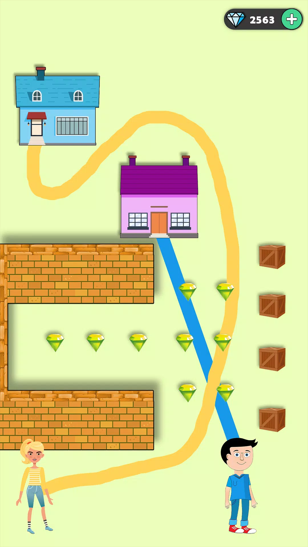 你想参加智商、创造力或绘画技能测试吗?你知道如何在逃脱益智游戏中画得好吗?现在,你有机会在这款“画线回家”游戏中接受智力测试。“画线”游戏是一款家庭益智游戏中的益智游戏。你想在这款“画线回家”游戏中回家,但房子隐藏在“画线”游戏中,你必须按照路径画线。现在,开动你的大脑,画线将家和男孩或女孩连接起来,小人就会跑回家,这就是这款“画线救女孩”益智游戏。在这个“画线回家”游戏中,如果你画的线到达“家”,小人就会放开家。如果画的线没有到达“家”,小人就会逃走,画线游戏也会失败。让我们一起通过“画线回家”游戏来帮助这些小人吧!
