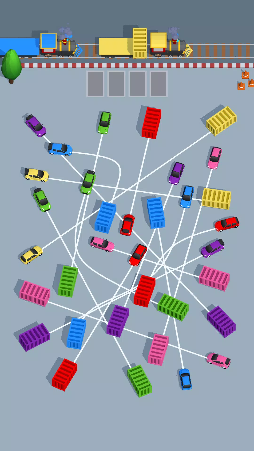 1️⃣ **移动车辆:**在停车场滑动车辆,创造三消组合