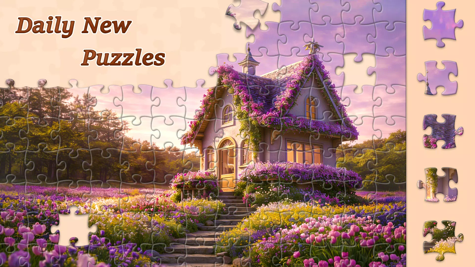 • 丰富的拼图收藏和主题等你探索和完成