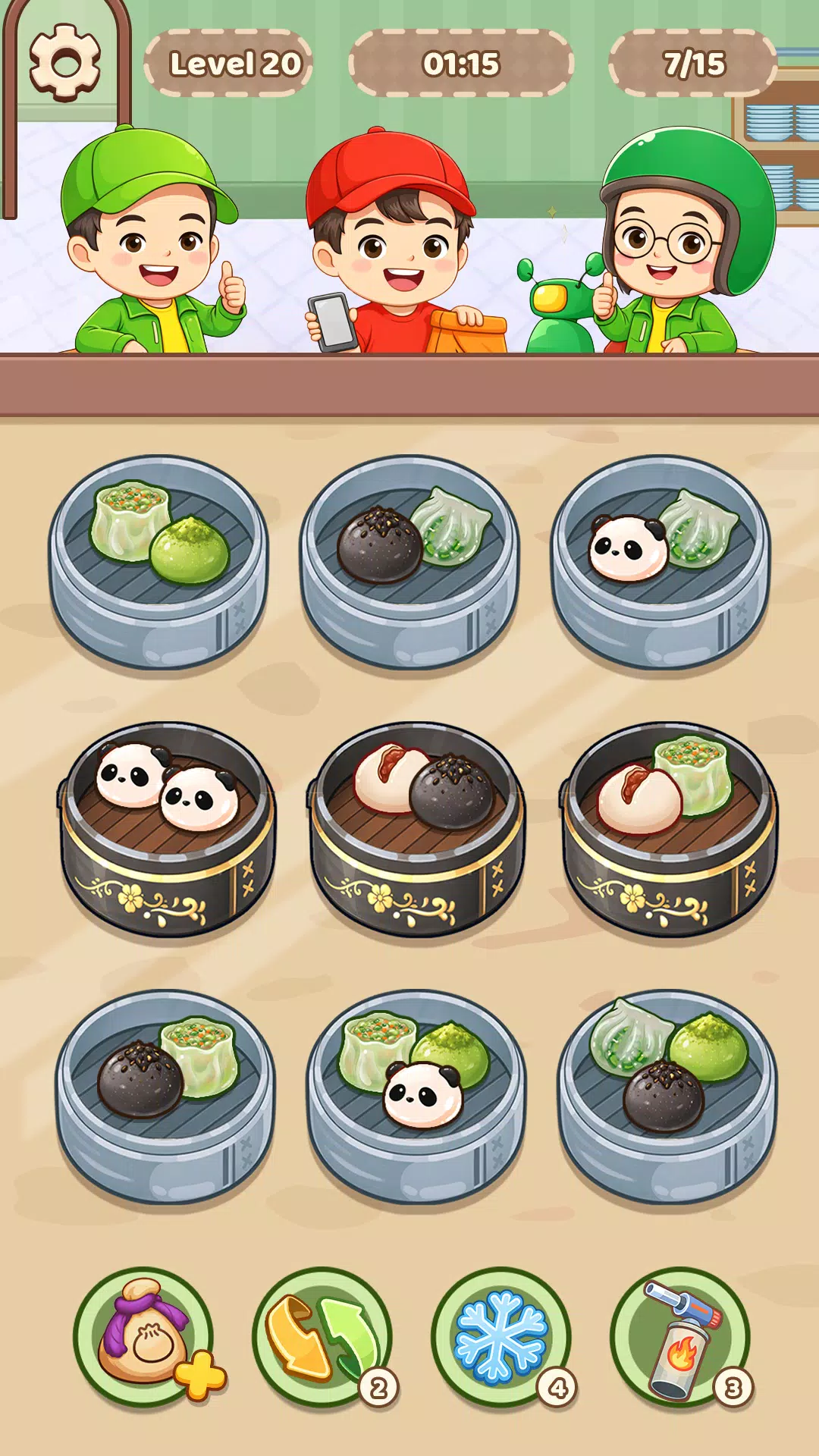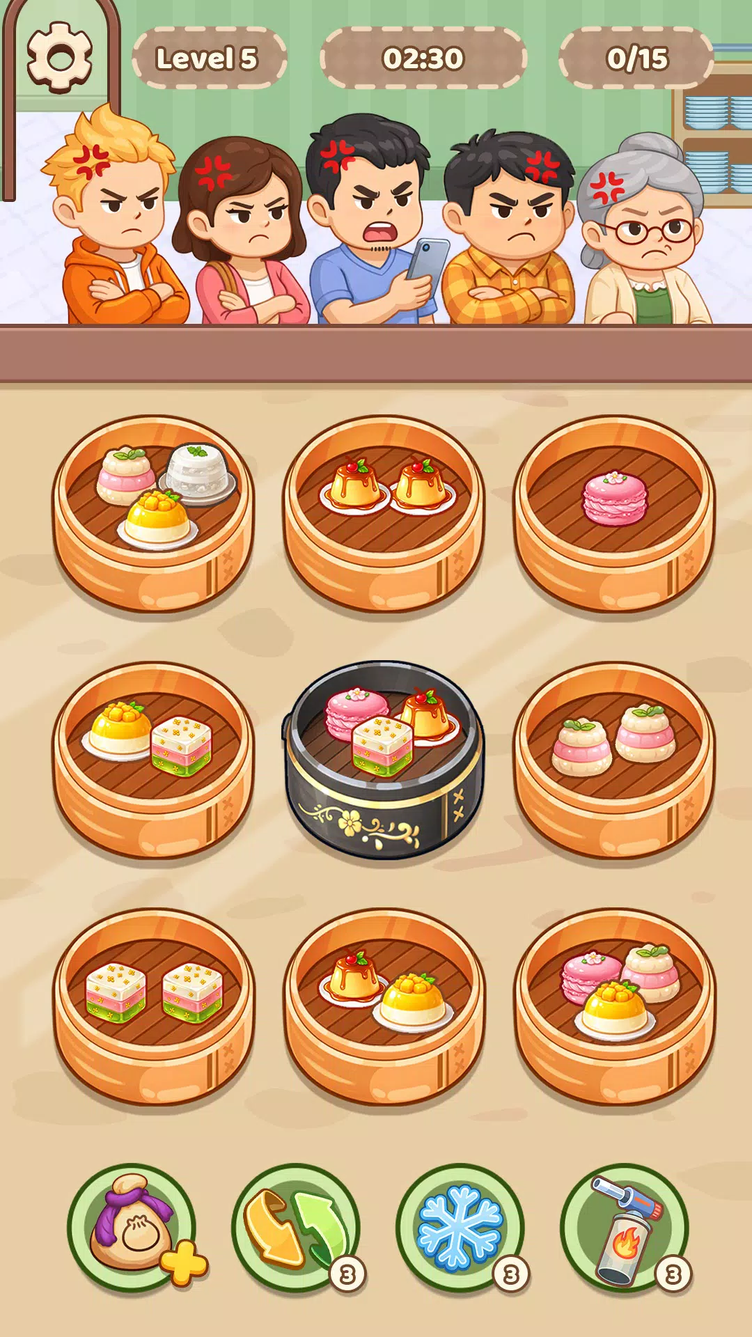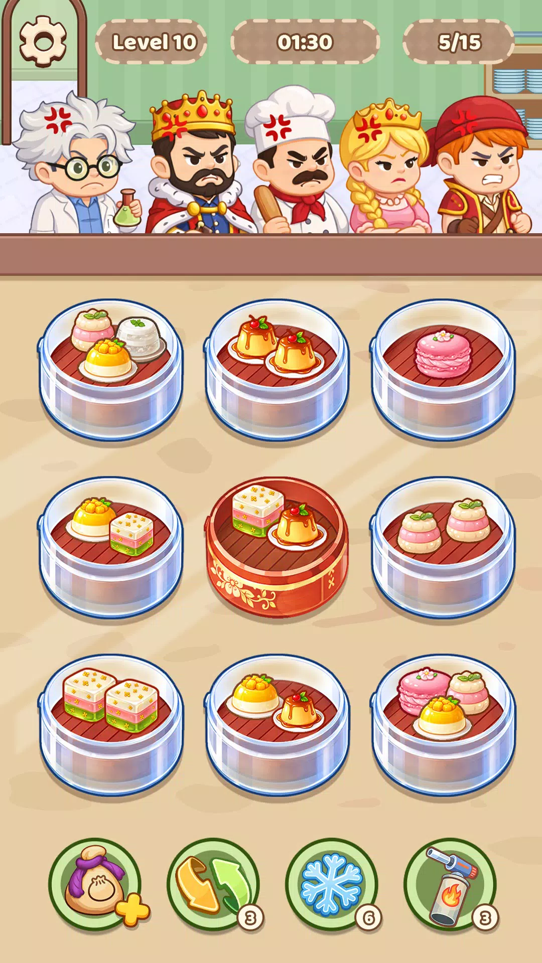 合并,合并,再合并。将相同的菜品整理到同一个蒸笼中即可完成一道料理。玩法简单却非常上瘾,难度逐步提升,既好玩又能锻炼大脑!