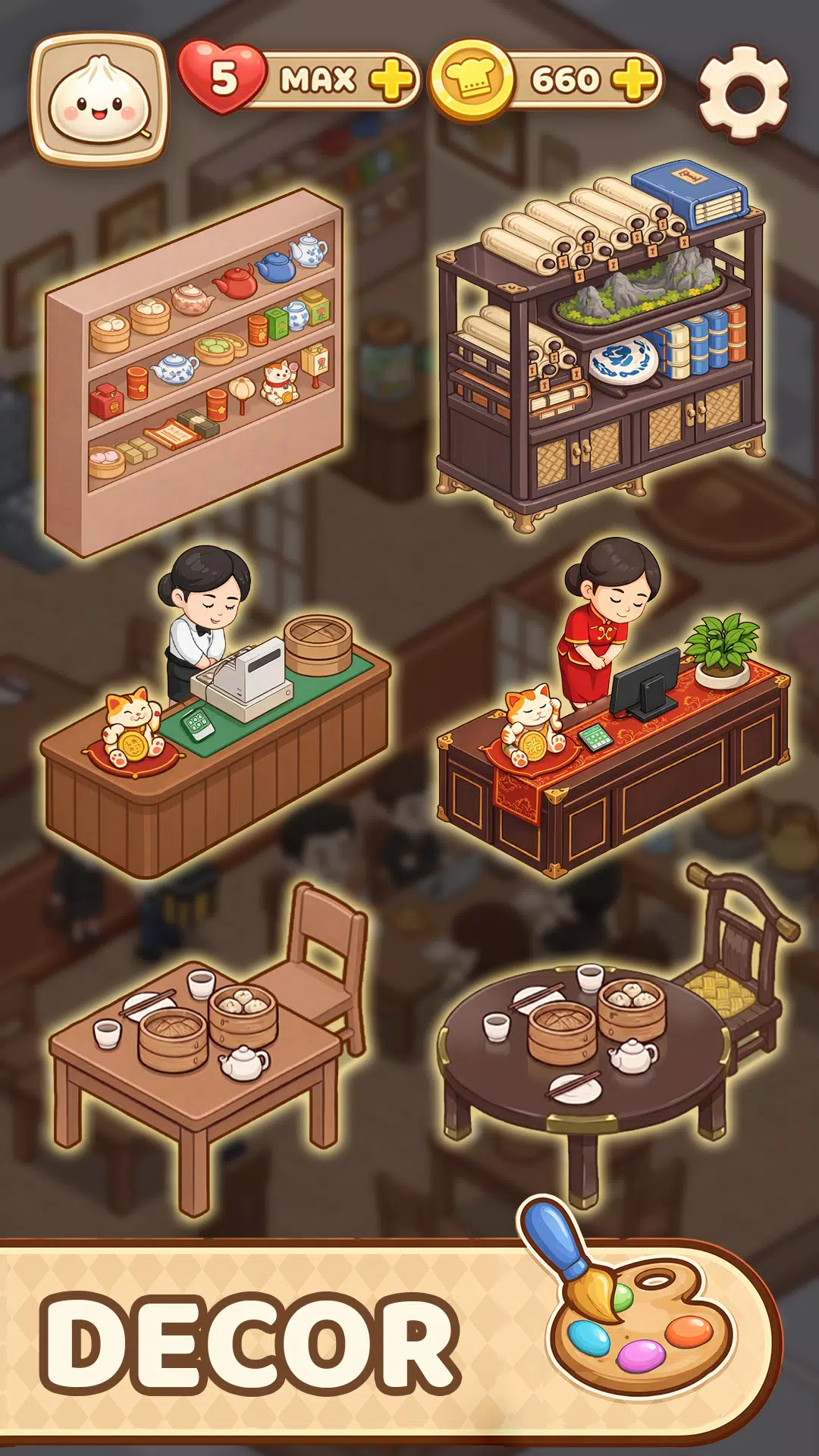 一家拥有丰富菜单的餐厅,从传统点心到更多美味料理等你发现。玩得越多,解锁的菜品就越多: