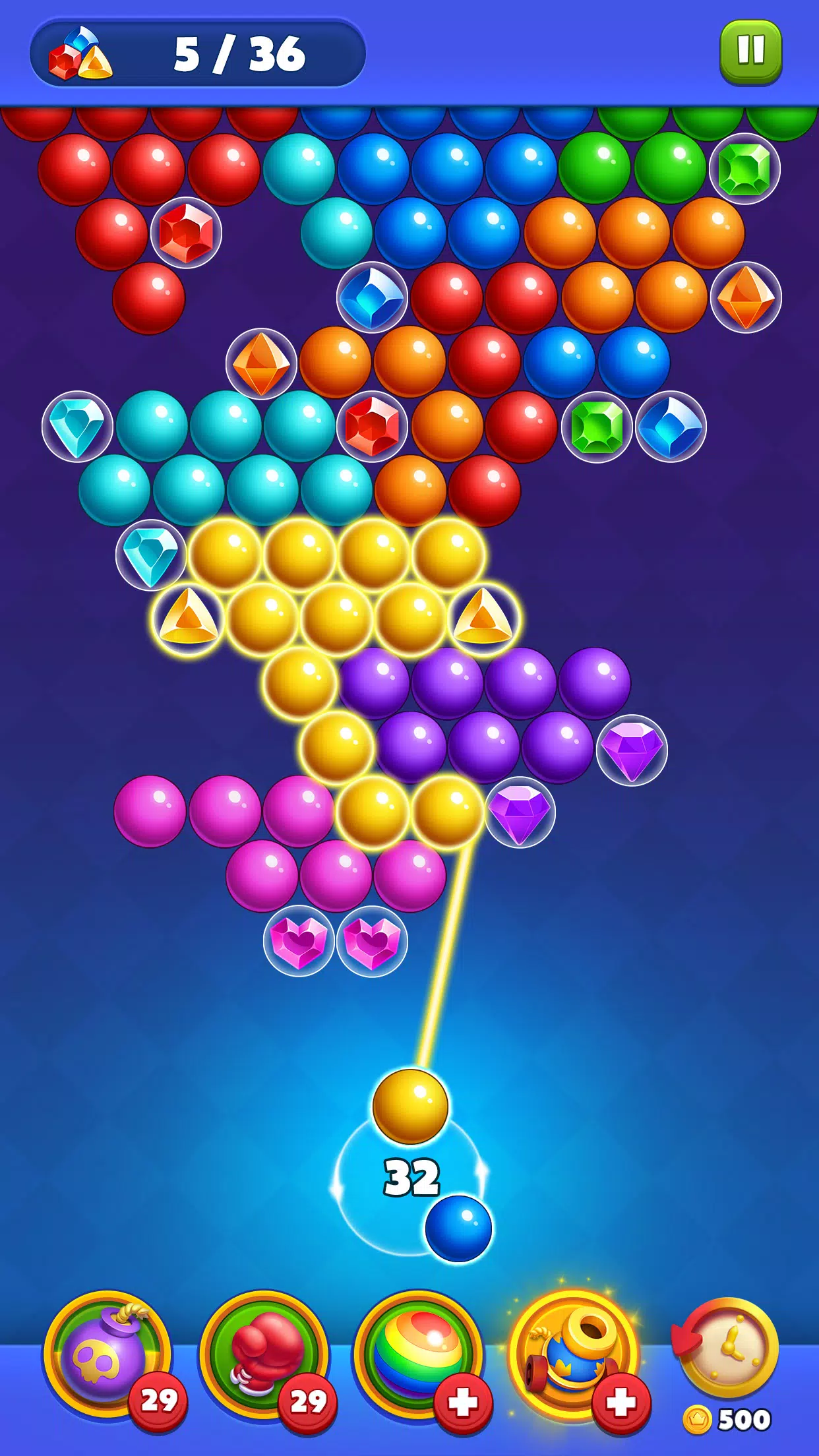 ・挑战关卡完成目标,消除泡泡,收集泡泡堆中的宝石!
