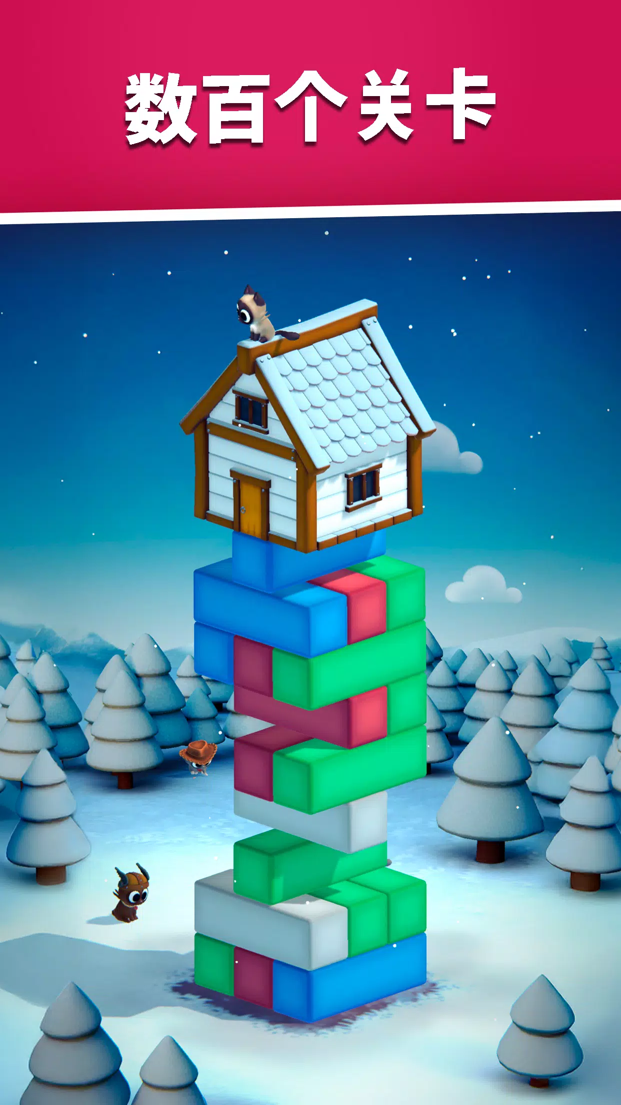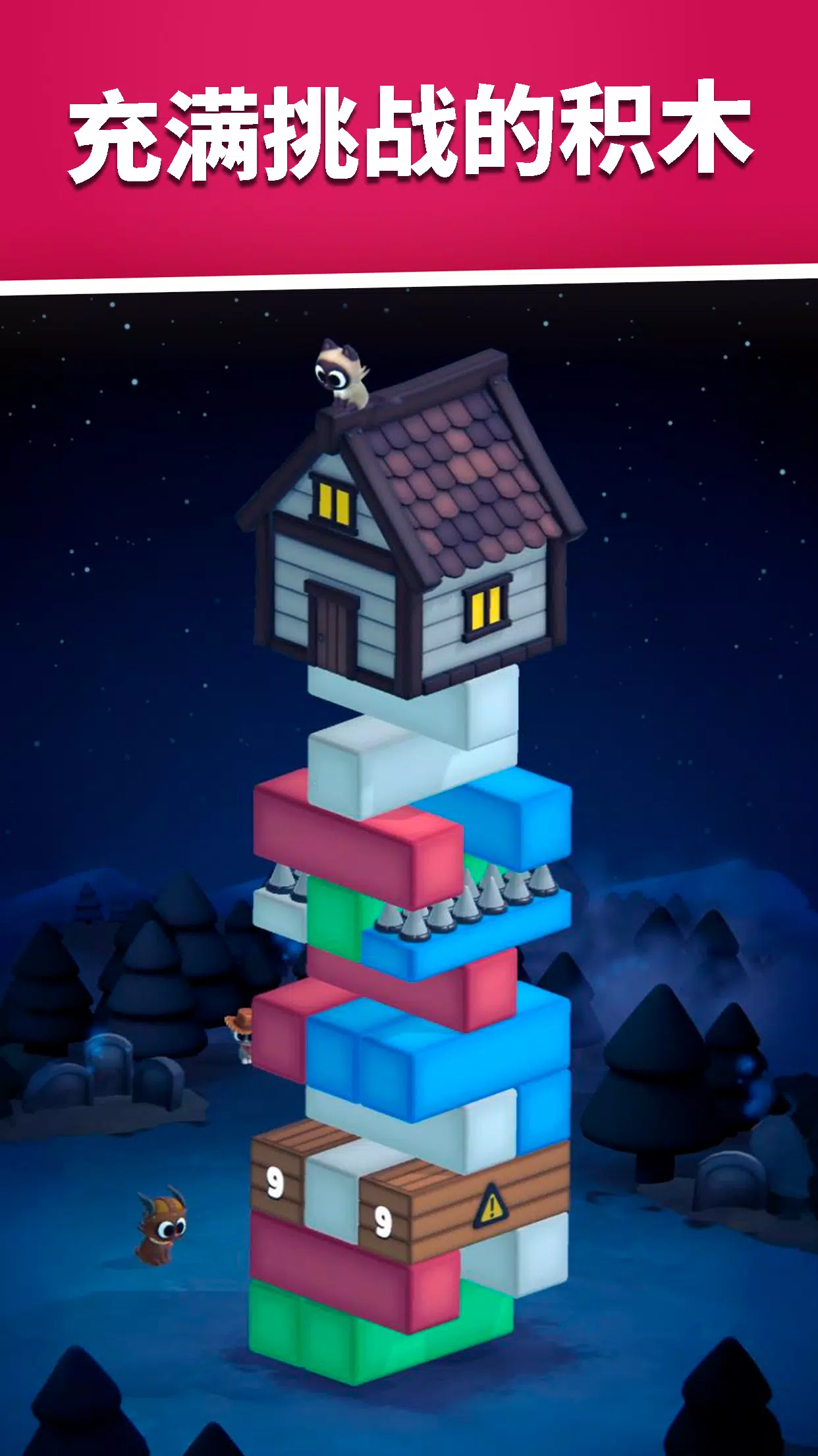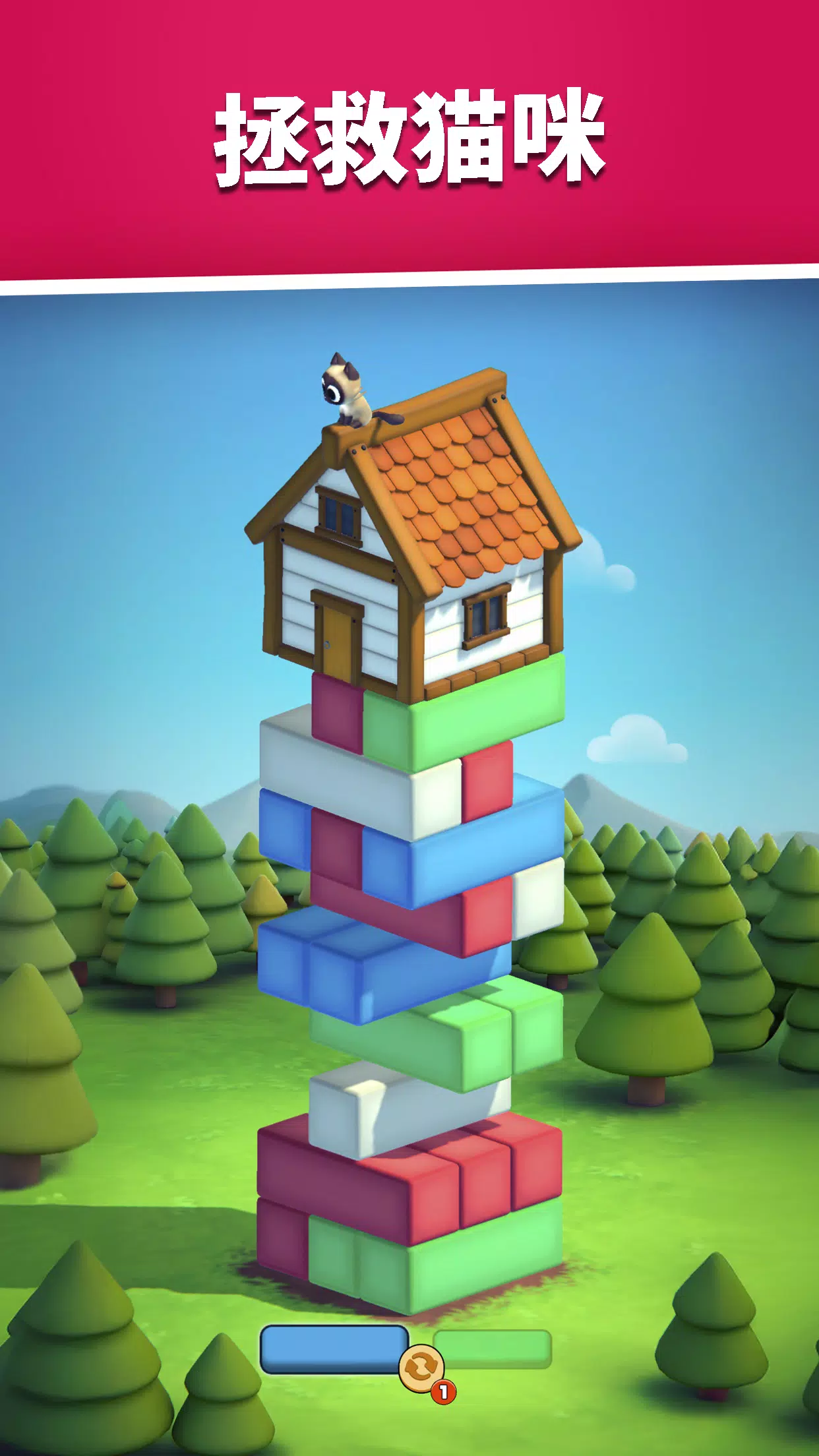 小心地一个一个移除木块,控制下落,保持结构稳定。提前思考,轻柔操作,引导你的猫咪朋友们回家!