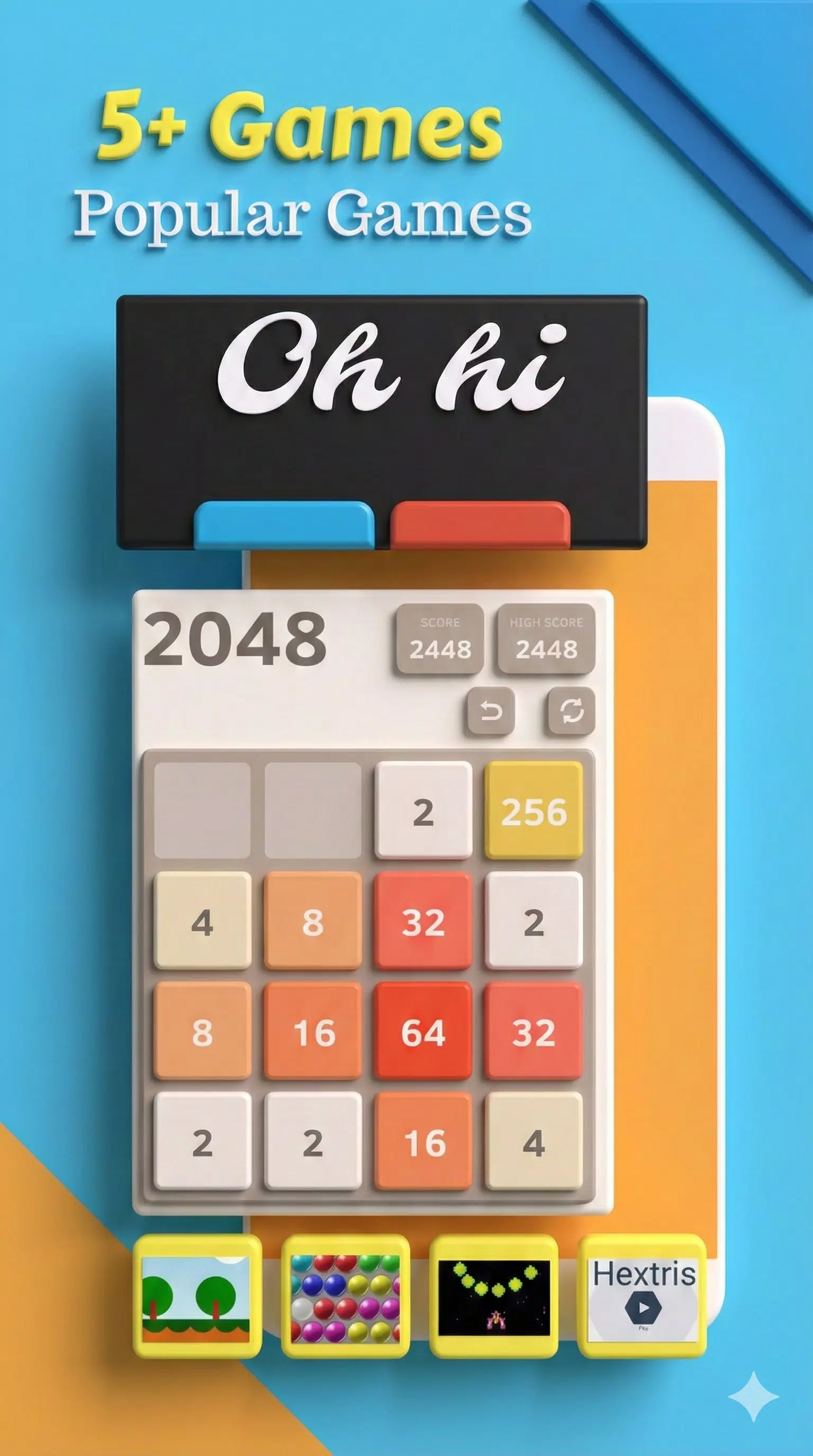 2048 益智游戏是一款简单、有趣且令人上瘾的数字益智游戏,此外还包含其他 5 种玩法。