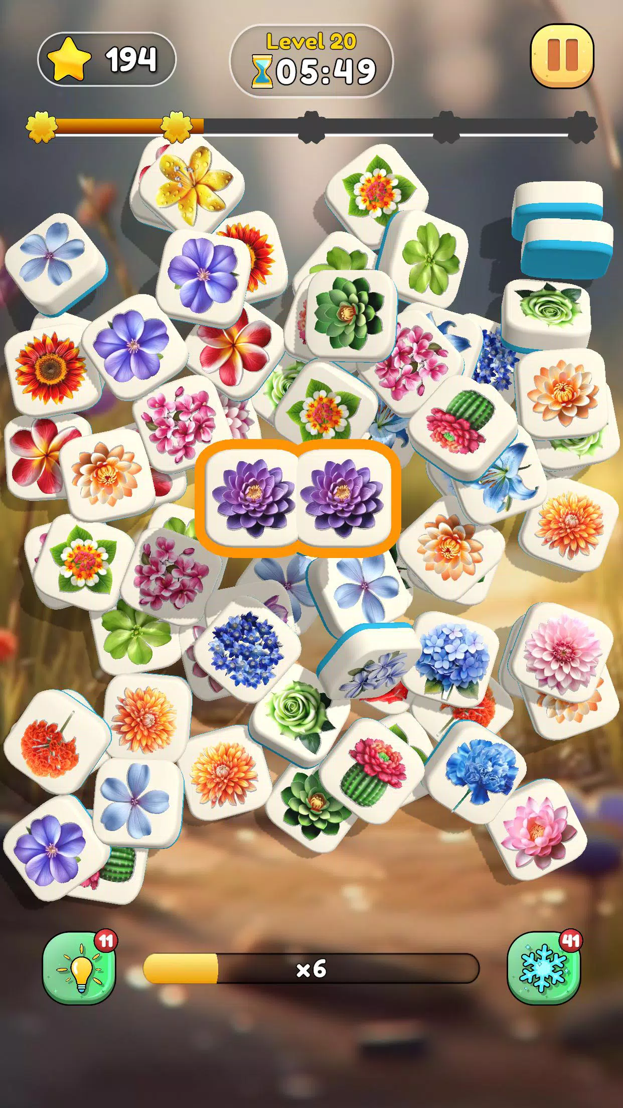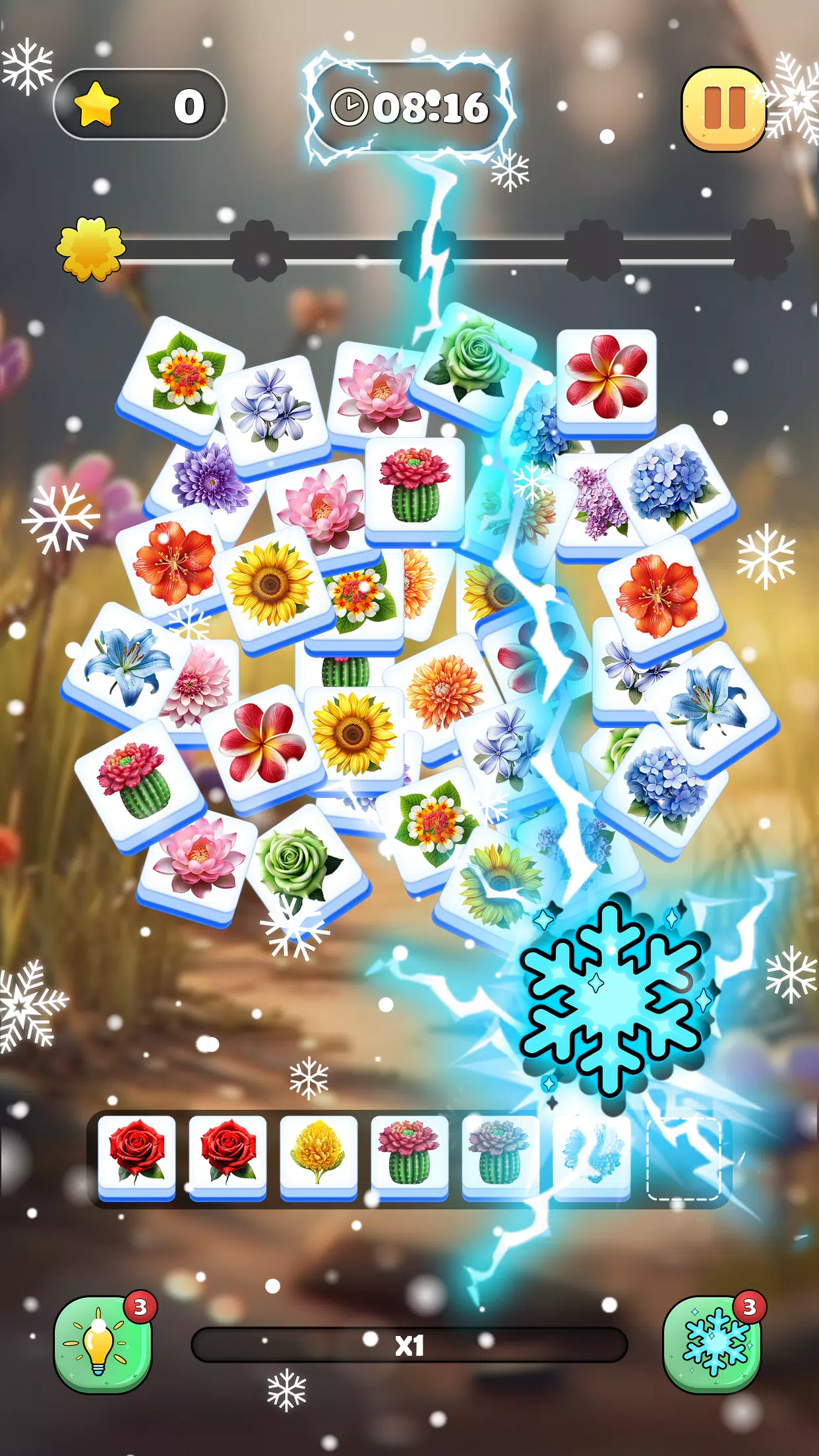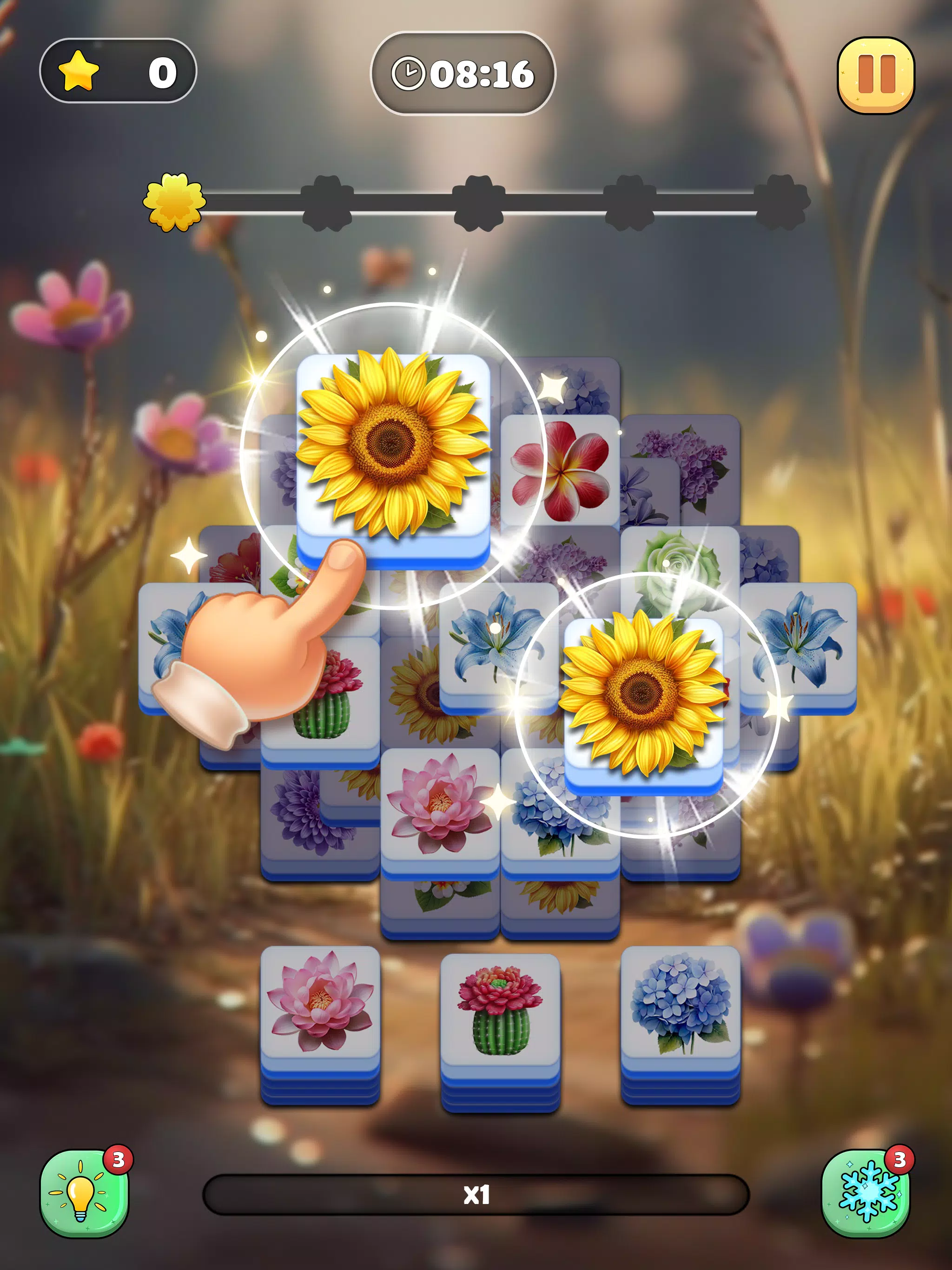 -您的目标是配对两个相同的花朵拼图,以将它们从板上清除并获得宝贵的积分。