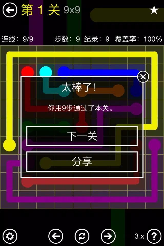 连接颜色匹配的管线,建立水流通道。 在 Flow Free 中,请将所有颜色进行配对,使管线覆盖整个区域,即可顺利过关。 请注意,如果发生交叉或重叠,管线将会破裂!
