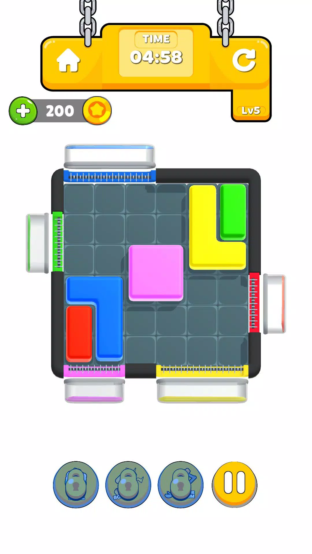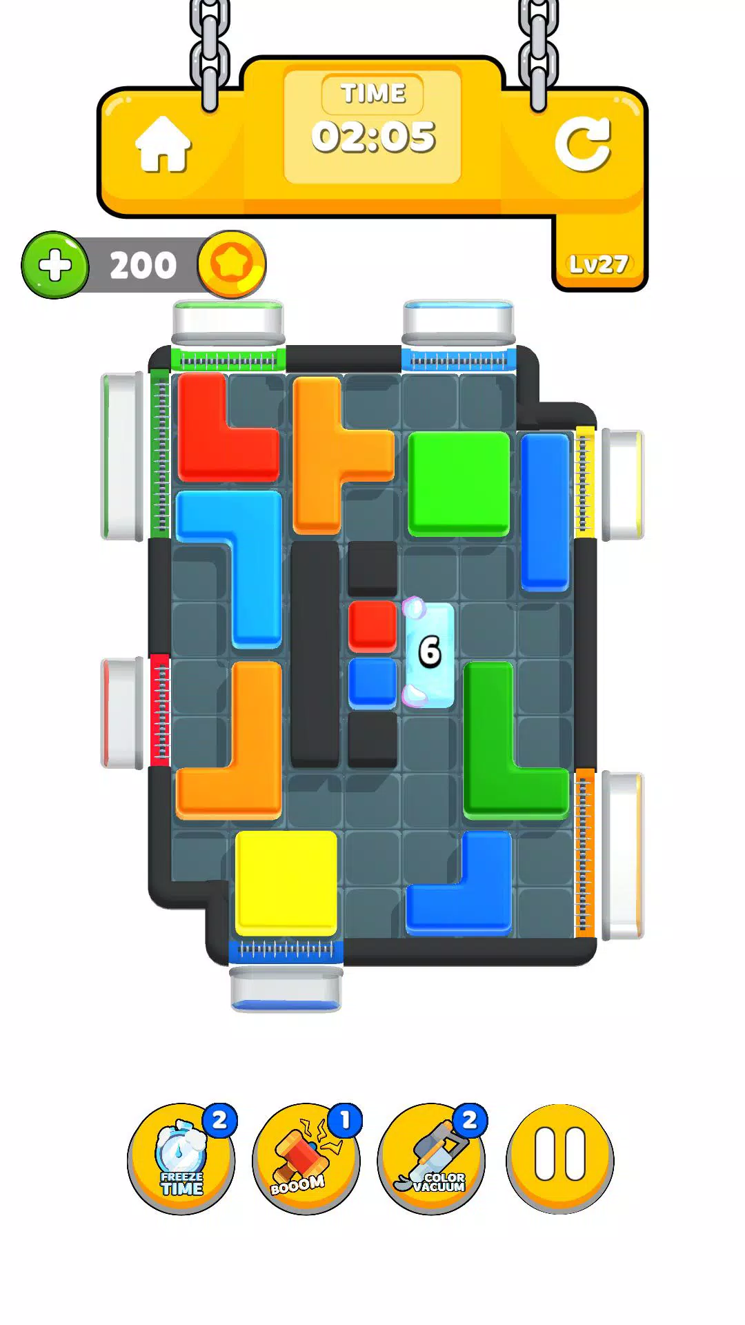 游戏玩法:移动果冻方块,将它们与相应的门匹配即可清除。随着游戏的推进,新的障碍物会出现,因此巧妙地规划你的移动至关重要。