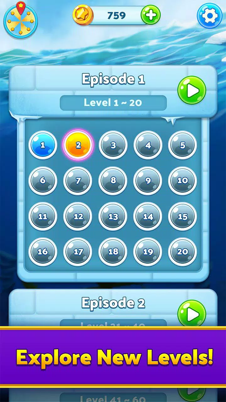 神奇的雪景,深邃的冰蓝色海水。美丽却寒冷。在北极气候下,还有什么比结识可爱的动物朋友,享受一轮刺激的游戏更温暖的呢?破解数百个精心设计的关卡,享受最极致的游戏乐趣。怎么做?很简单,只需匹配3个或更多相同颜色的方块即可!需要帮助?选择不同的道具来助你通关!