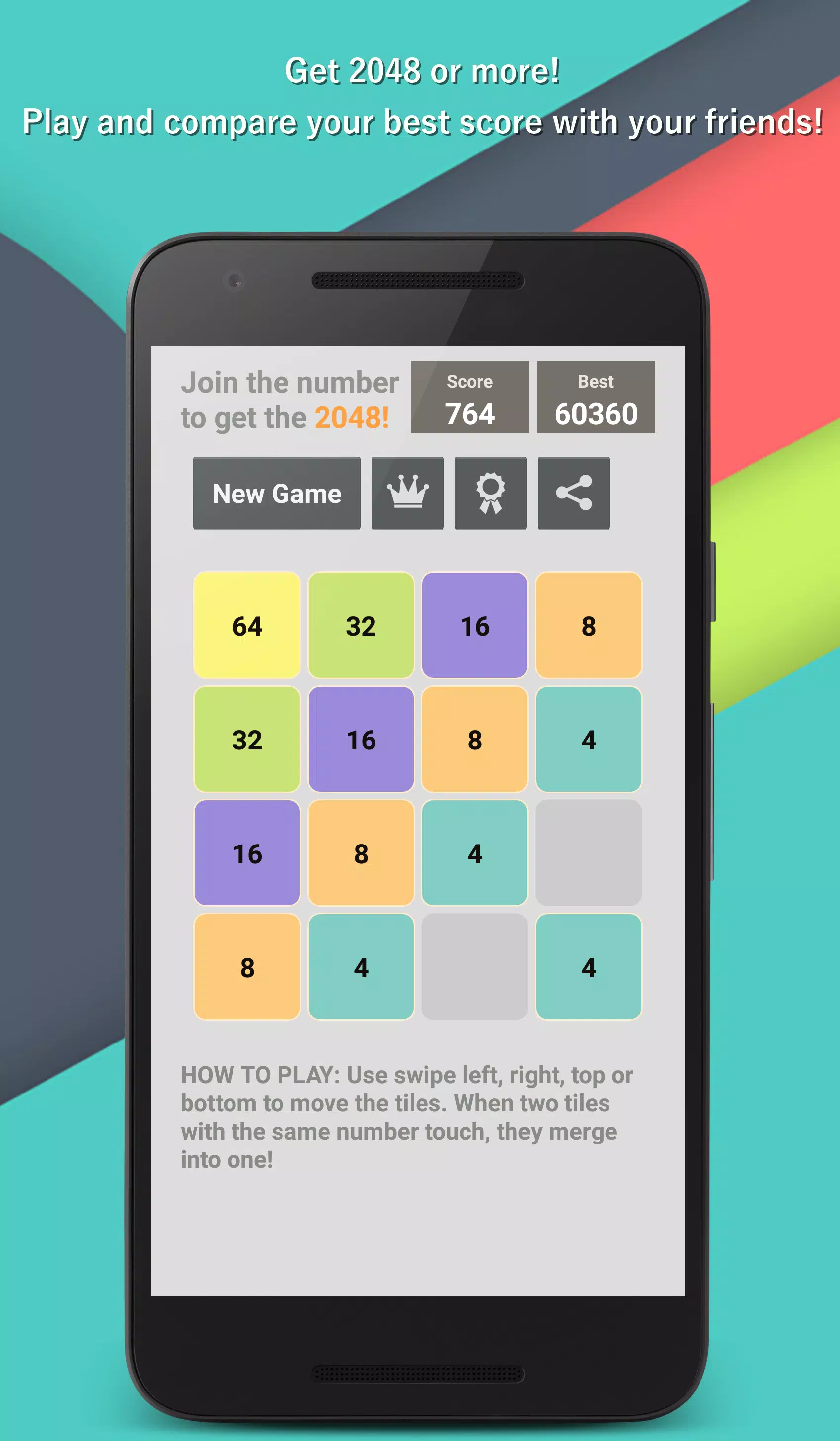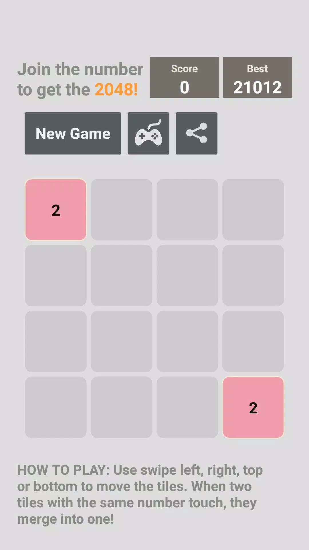 • 合并两个相同的数字即可获得更高的分数。
