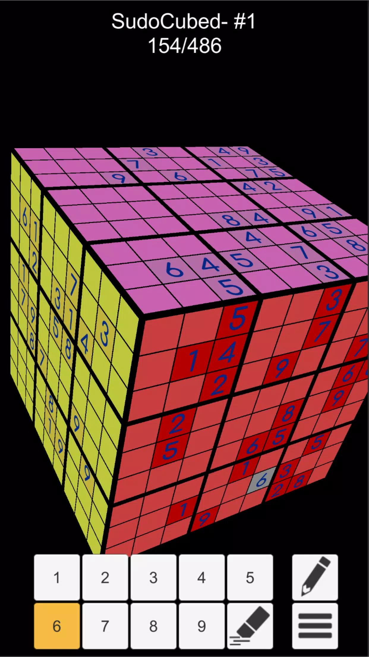 每个魔方面的边值由相邻面共享。放置边值时,请务必旋转魔方以检查其他面!你可能会发现你刚刚放置的数字不应该在那里!