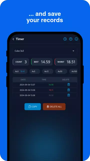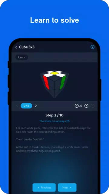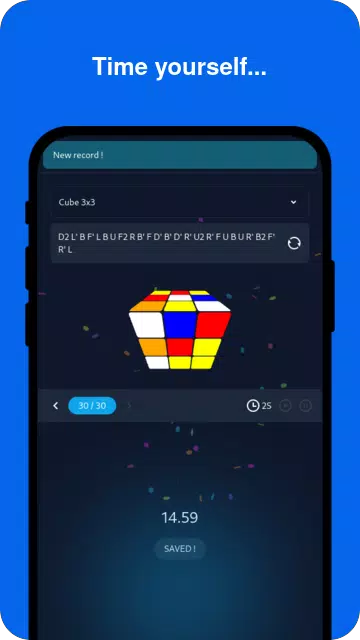 使用随机洗牌和带有完整统计数据的计时器(SpeedCubing),练习尽快解开您的魔方。