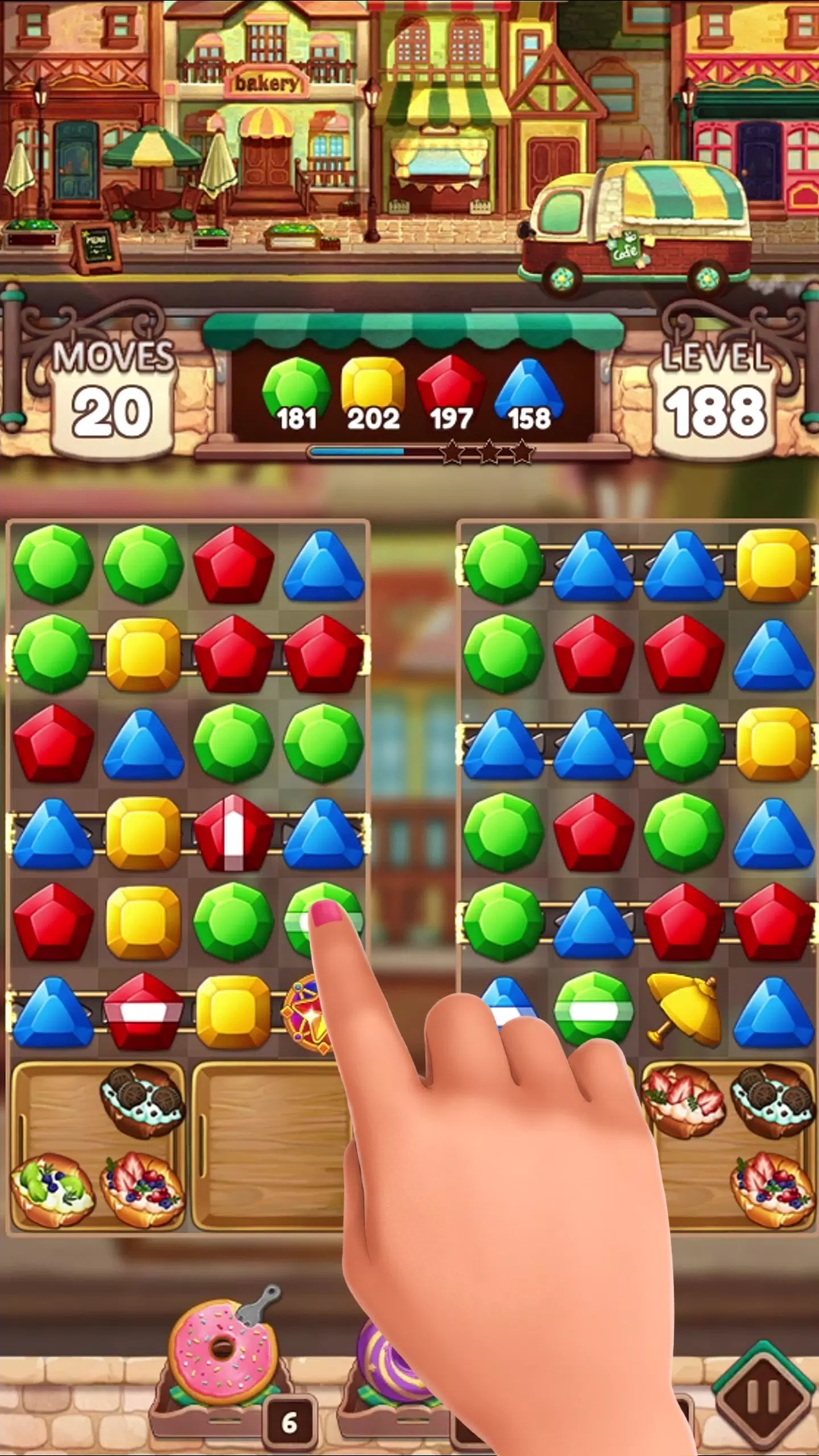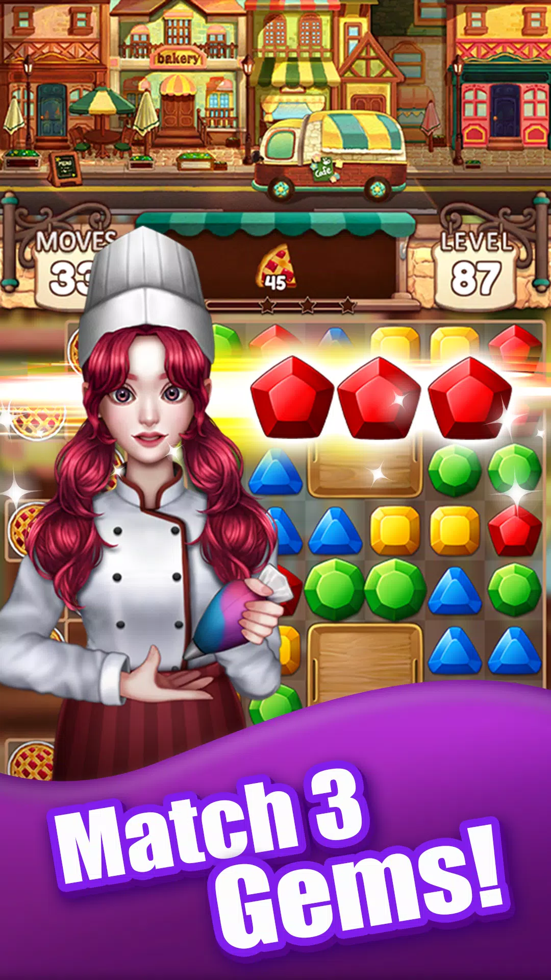 体验魔法面包店的魔力,享受有趣和轻松的氛围。匹配3个或更多的物品,创造组合,赚取积分。解锁特殊的助推器和动力装置,帮助你更快地完成关卡。在你通过关卡和解锁新奖励的过程中,享受多彩和轻松的氛围。