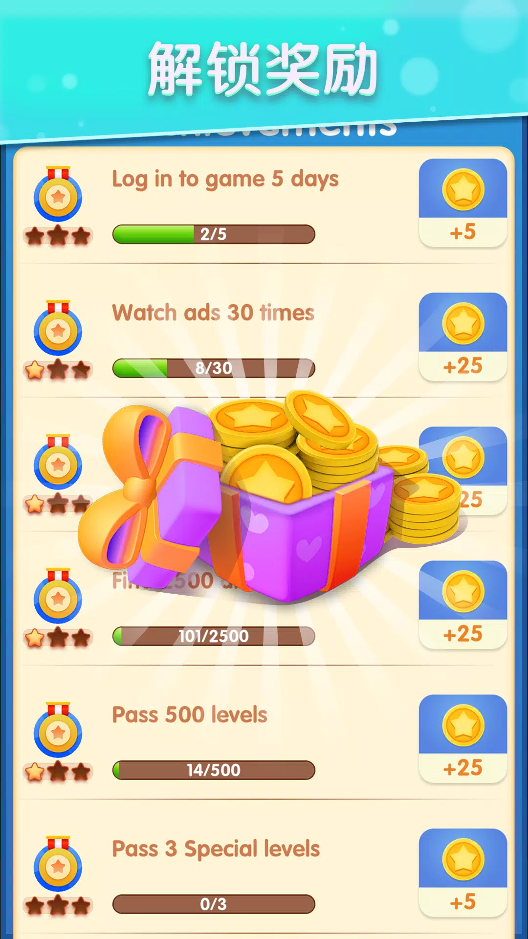 ● 欢乐时光!有超过 5000+ 关卡可供游玩,我们为您提供数小时的谜题和有趣的游戏体验。