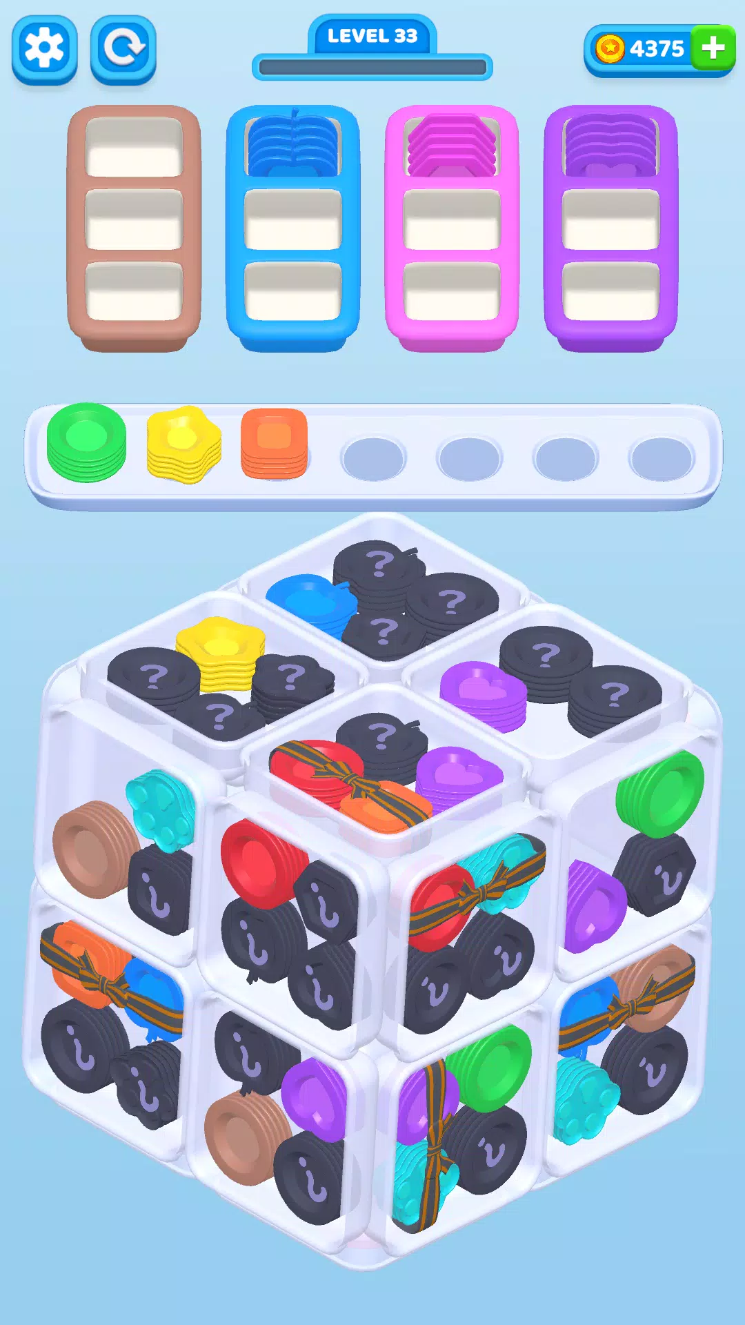 这是一款激动人心的三消益智游戏,你需要将 3D 堆叠的彩色盘子与其对应的目标颜色进行匹配。旋转盘子,查看埃菲尔铁塔、猫咪、汽车、自由女神像、爱心等等各种图案的形状,一键清除面板,一路畅通无阻,闯过精彩的关卡!