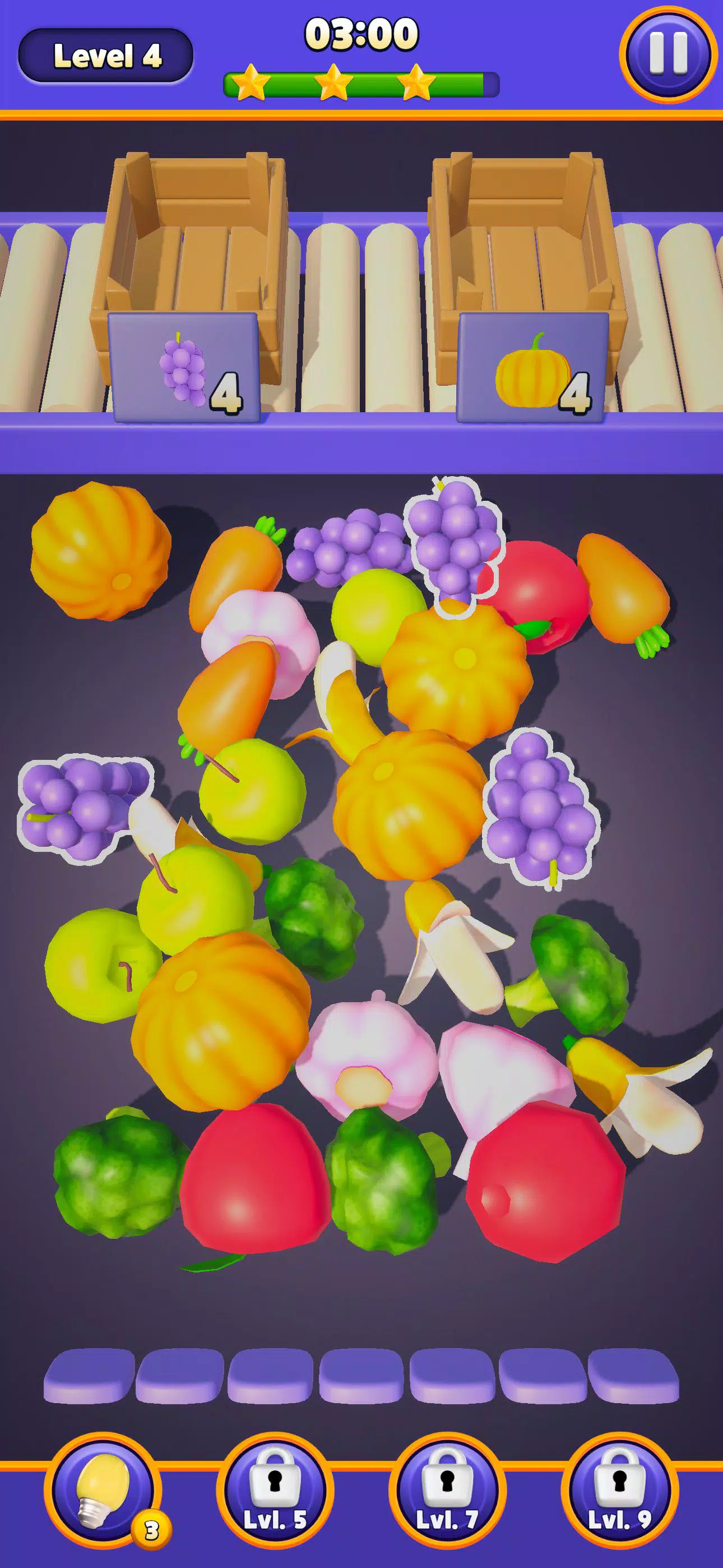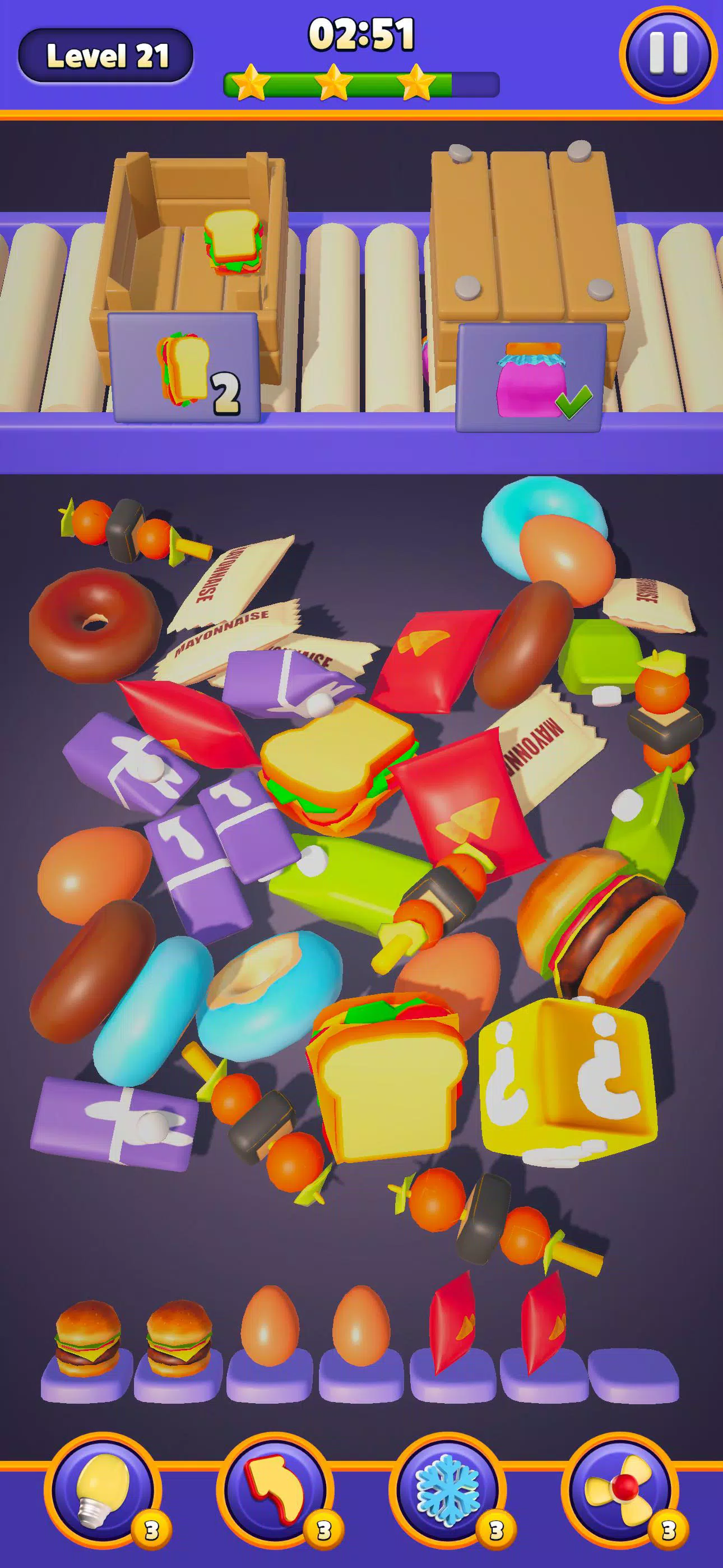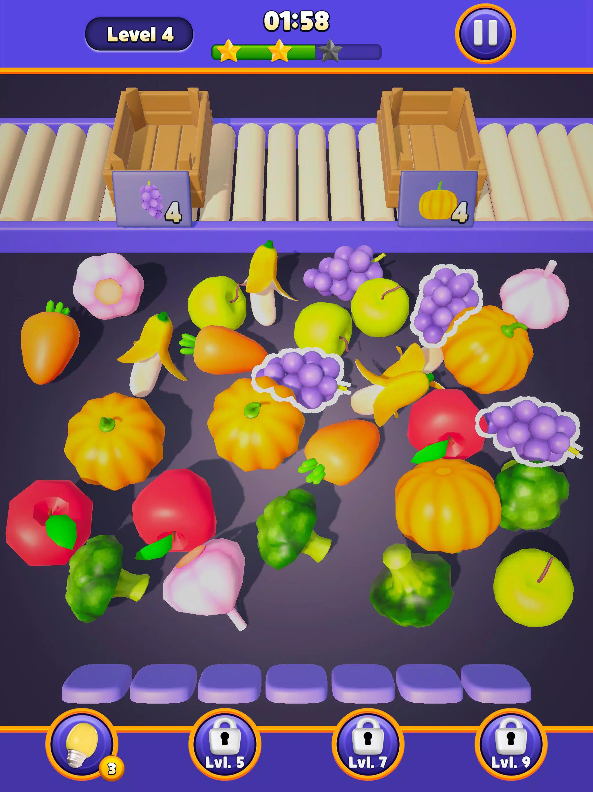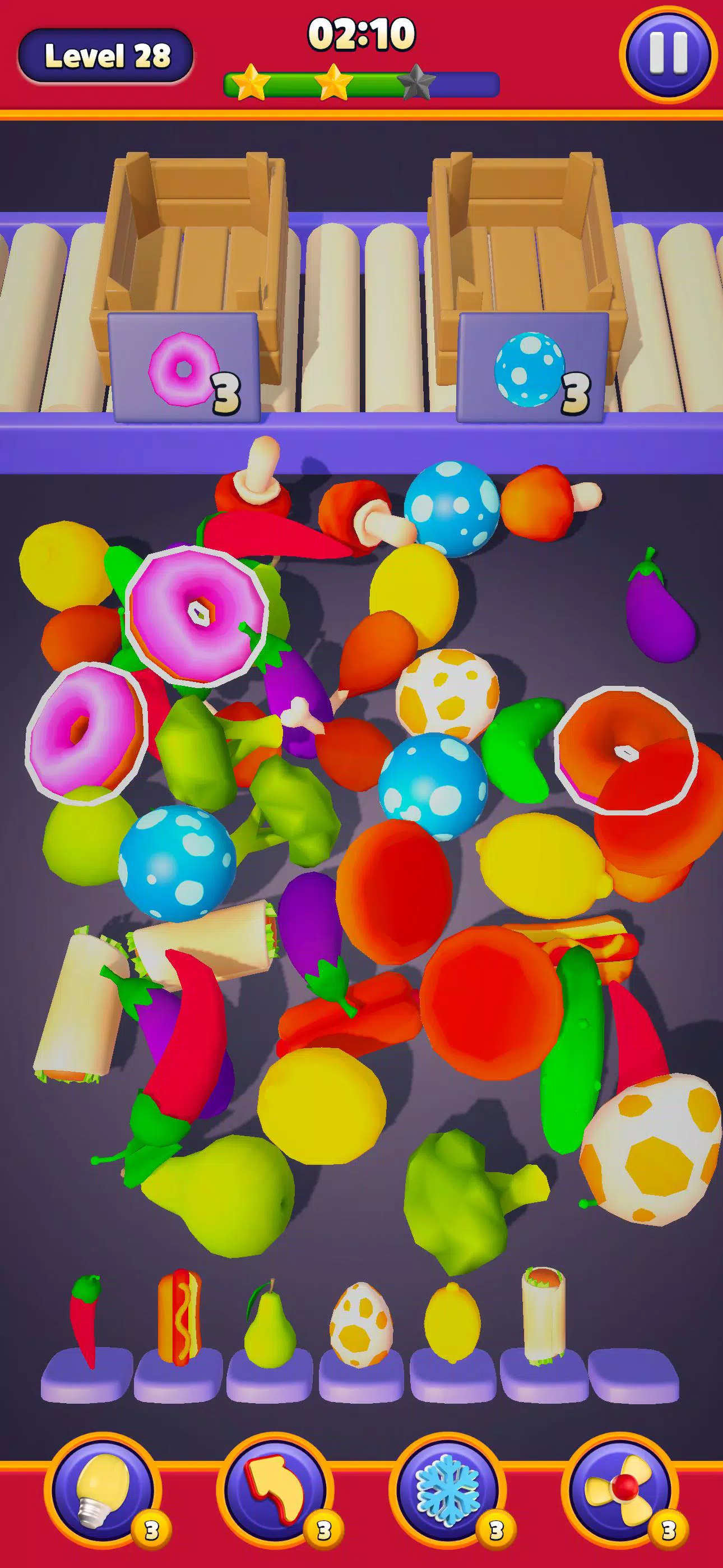 🧃 在高级关卡中发现新物品。每个关卡都会引入新的种类,挑战也随之增加。