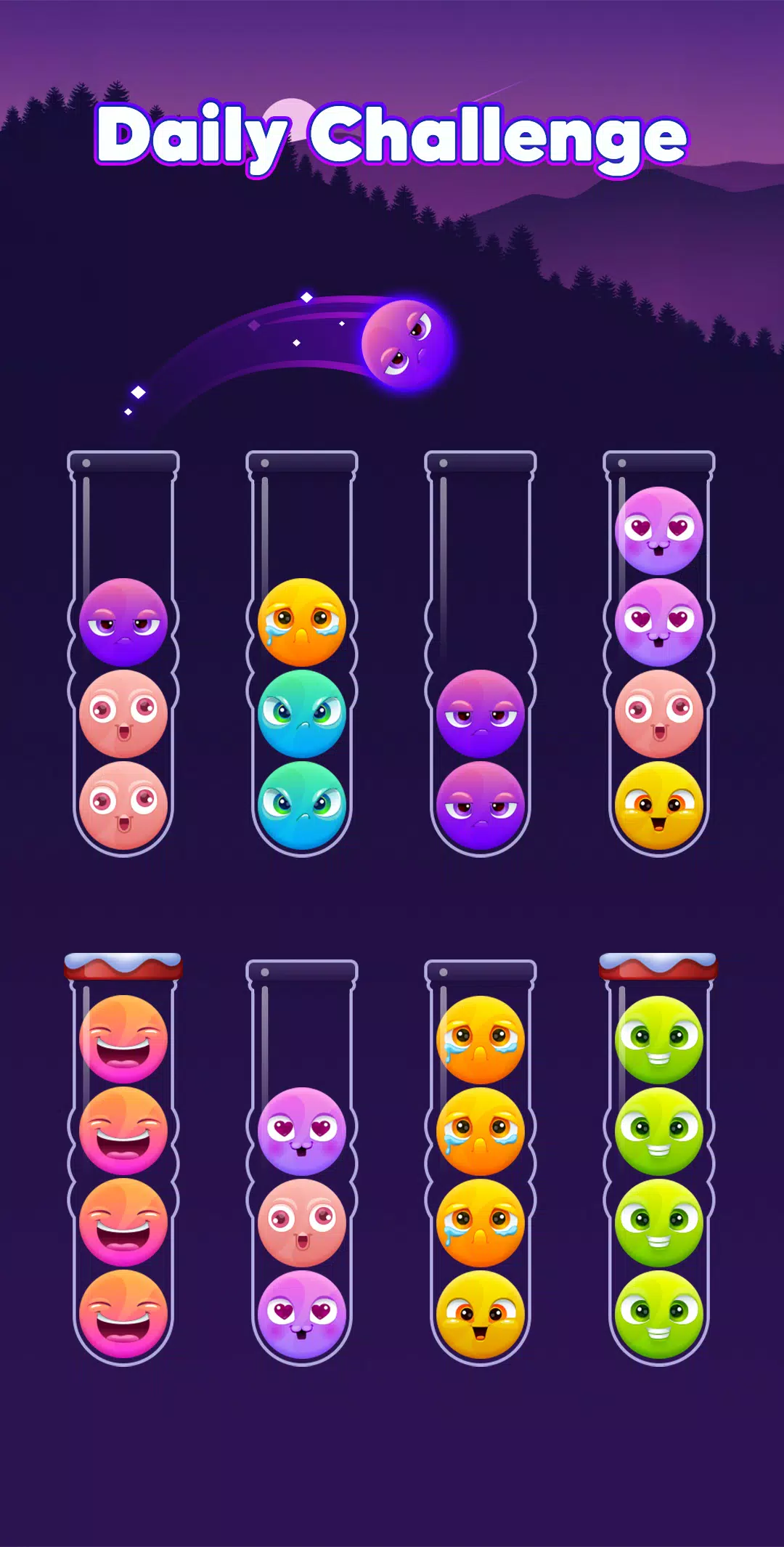 在这款经典的球球分类益智游戏中,您的目标很简单:匹配颜色,规划您的移动,避免卡住。您只能将一个球放在另一个颜色相同且管内空间足够的球上。点击屏幕移动并分类彩色球,直到每个管子里都只有一种颜色。每个关卡都是一个新的逻辑谜题,考验您的策略、耐心和脑力。这款球球分类益智游戏易于上手,但精通却需要技巧,完美平衡了挑战性和休闲性。