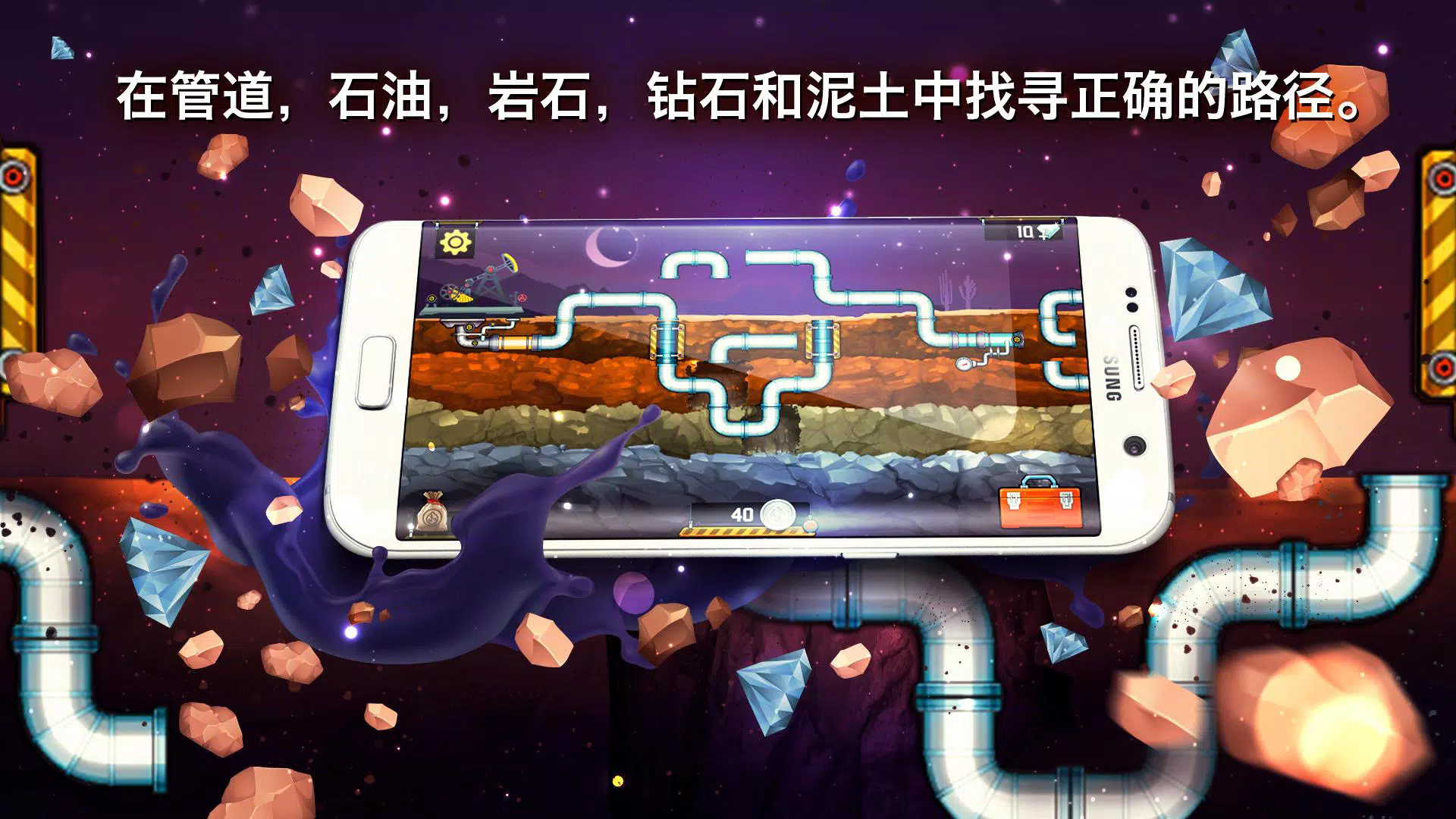 就像在现实生活中一样,你的任务是通过连接管道并且使管道能成功地让液体流动,以防止泄漏和溢出。如果你不想被洪水淹没,你需要展示一些逻辑技能,而不是体力上的劳动。