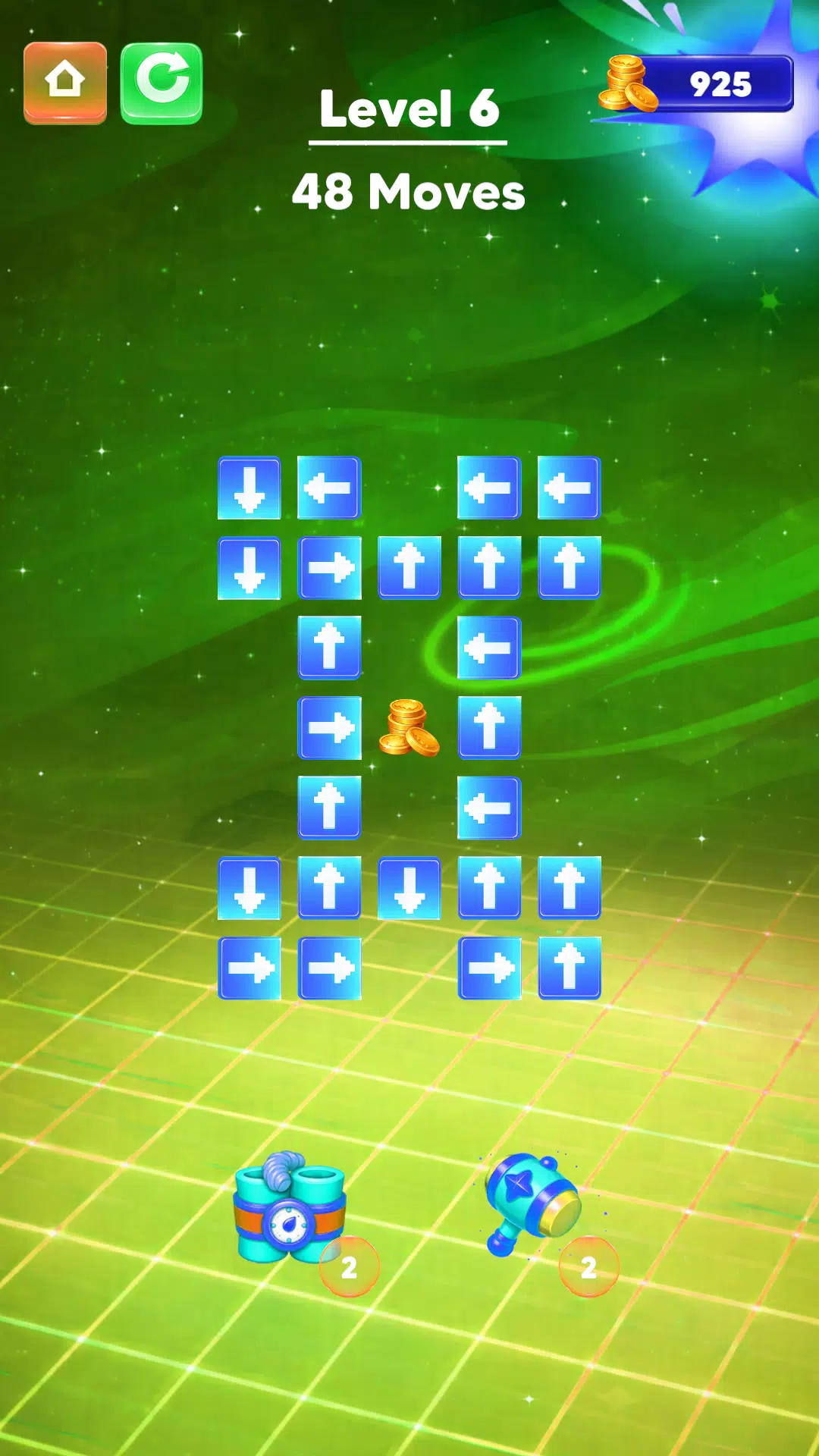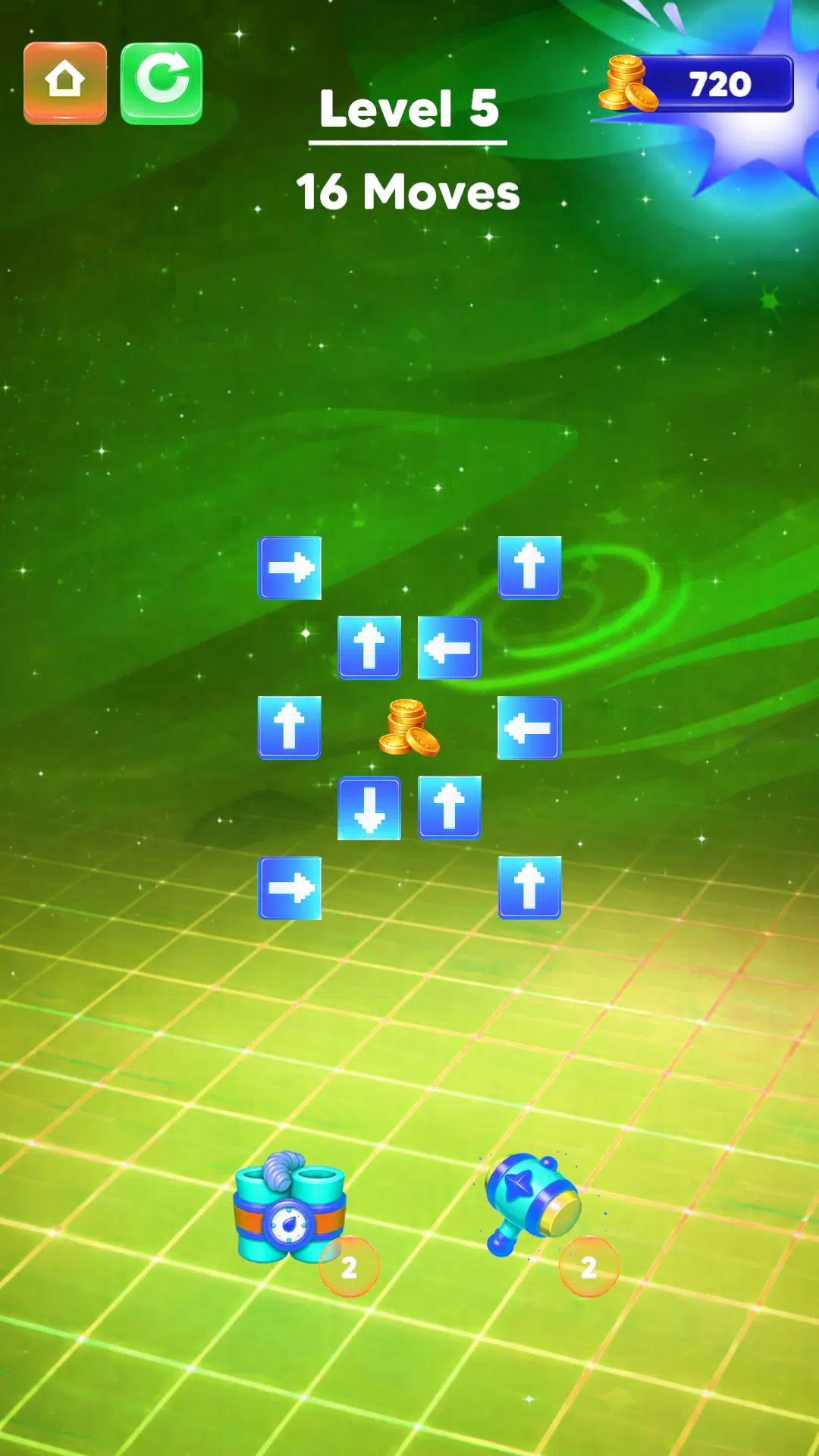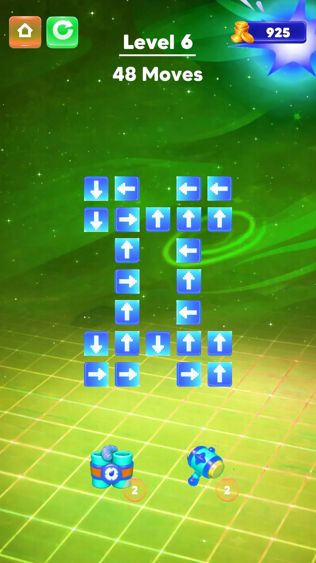 每个方块都带有一个箭头,指示其唯一的移动方向。游戏目标简单易懂,但精通却颇具难度:点击方块滑动,使其在网格中移动,最终消除所有方块。然而,方块只有在路径完全畅通的情况下才能移动——任何障碍物都会阻挡它们的去路。每一步都至关重要,周密的计划是成功的关键。