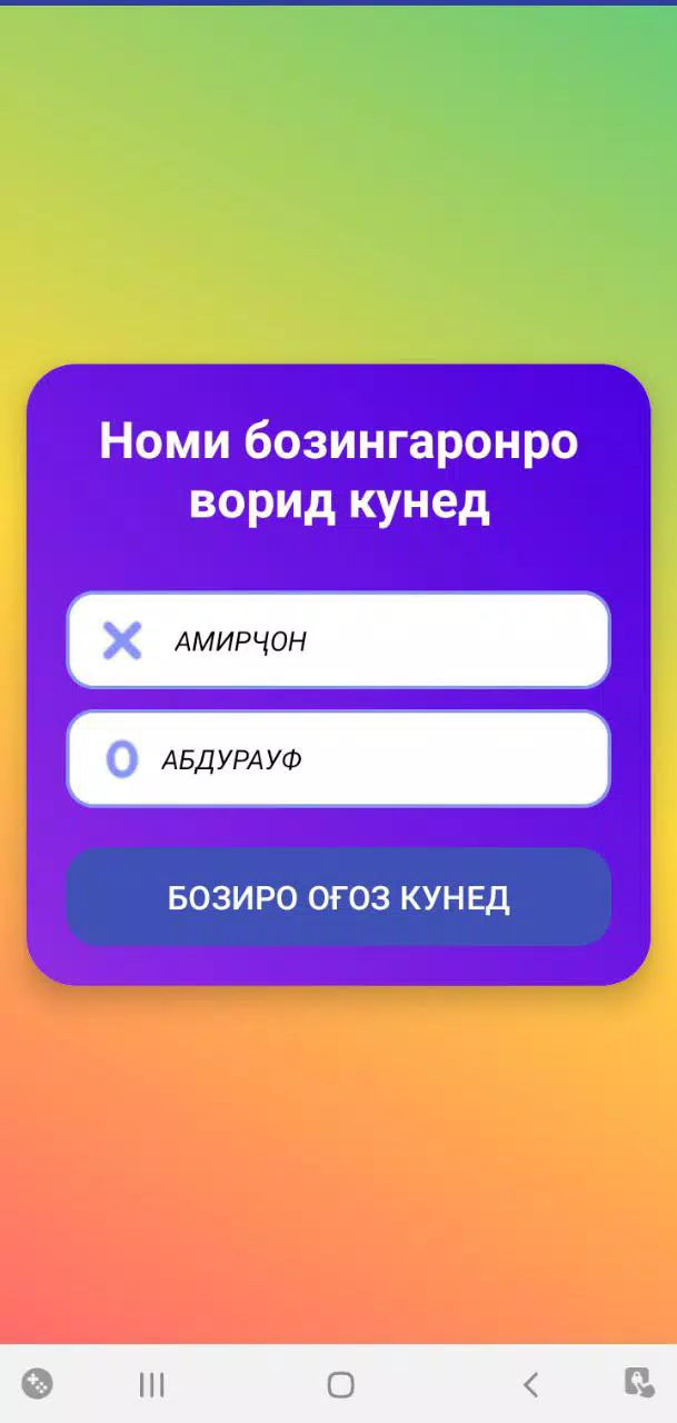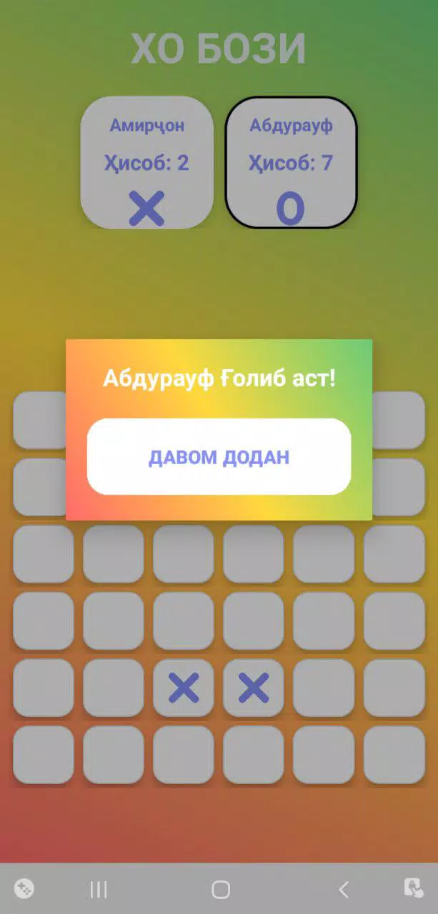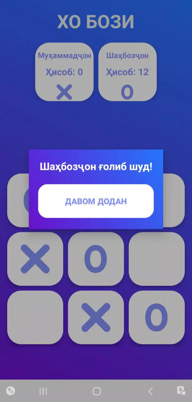 X – O bozi mamulest,ki do nafar bozi mekunand。 Hadafi asosi in ast,ki nishoni khud(“X”yo“O”)-ro dar yak kator,sutun yo对角线shabakai 3×3 choygir karda,avalin shuda piruz剃光。在 Bozi bo yak qoidai oddi shavkovar buda、baroi takmil dodani fikrroni va malakai strategī kumak mekunad 中。 Bozi Metavonad ba ohir bo piruzi yo musovi birasad。