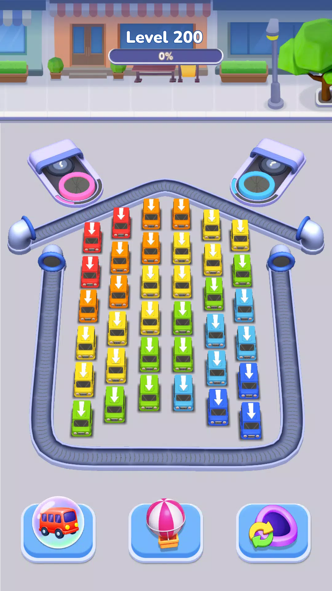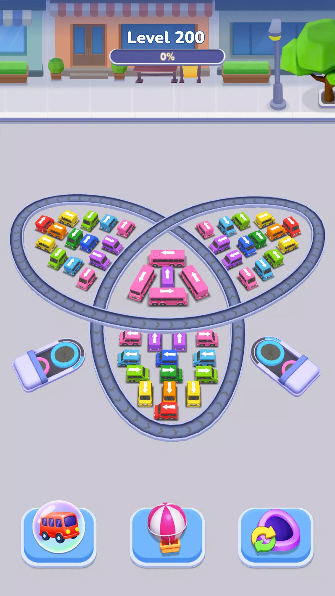 《环形巴士逃脱》是一款趣味十足的交通堵塞解谜游戏,巴士永不停歇,人们也永不停歇地奔跑——他们只是沿着环形道路绕圈行驶。在合适的时机点击屏幕,保持环形路线畅通,引导每辆巴士驶入对应颜色的出口。