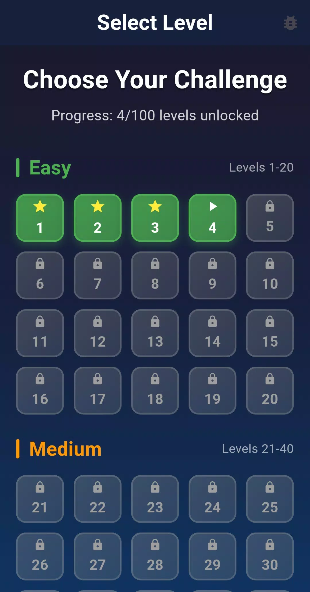 🎯 充满挑战的关卡——100 多个精心设计的关卡,涵盖简单、中等、困难和专家难度。每个关卡都引入了新的挑战和策略。