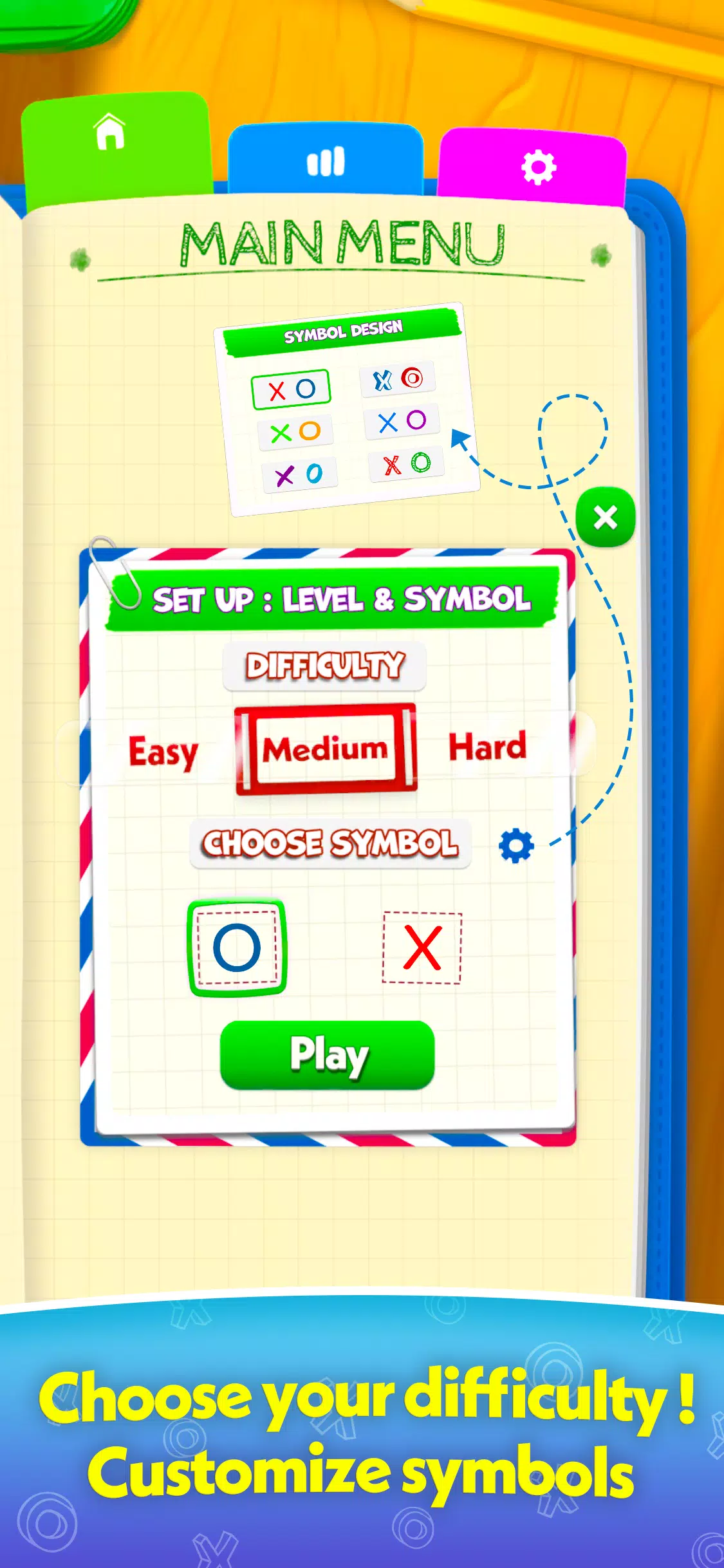– 使用一系列精彩的 XO 符号设计选项,定制您的游戏体验。