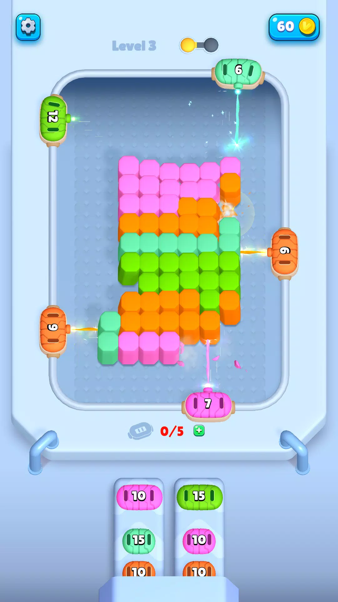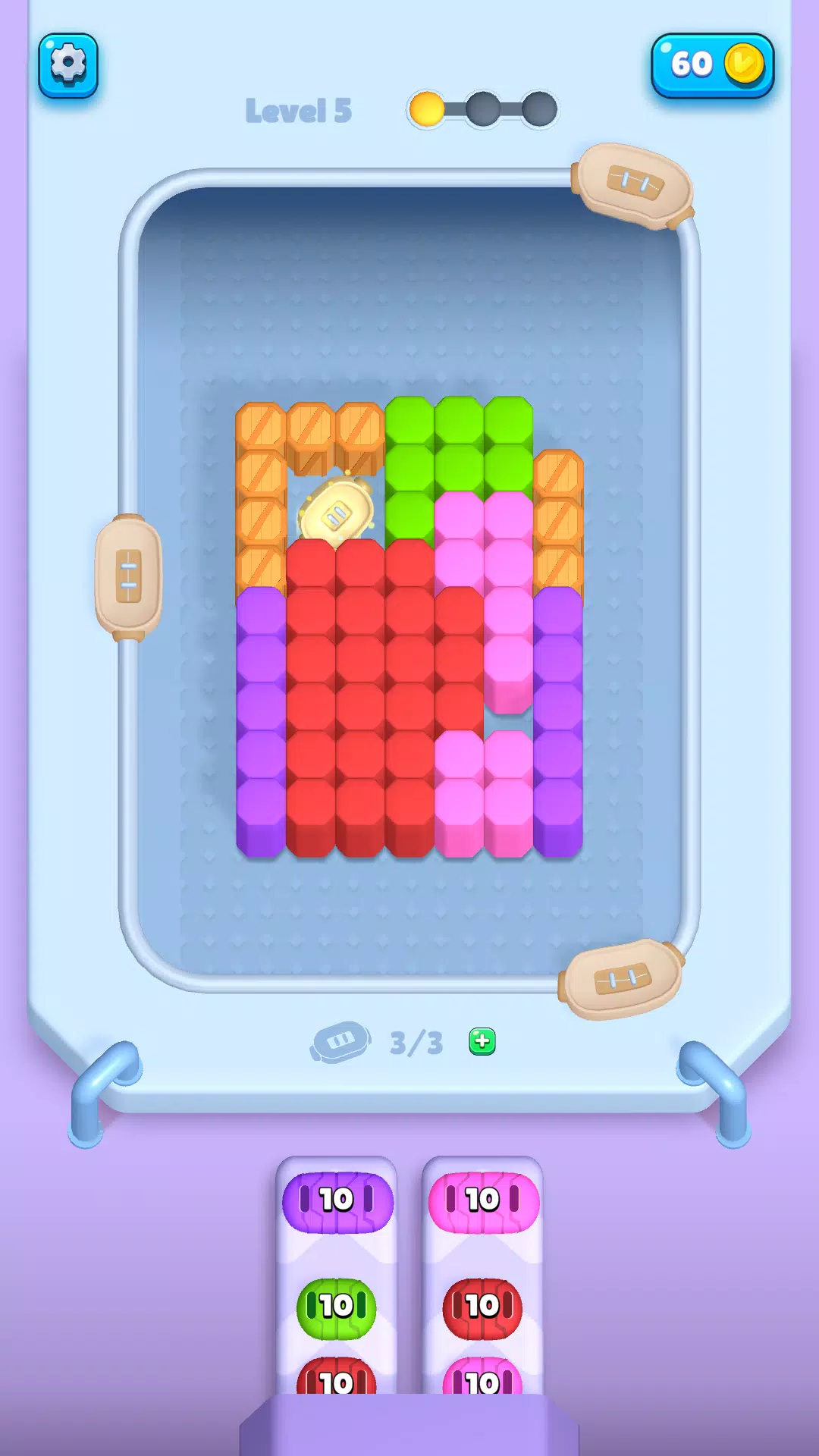 传送带上的插槽有限,因此每次放置都至关重要。仔细计算发射时间,并巧妙地选择最佳位置——一个错误的举动就可能彻底阻碍你的进程!幸运的是,《激光果酱》提供大量免费道具和强化道具,帮助你轻松解决最棘手的谜题。务必谨慎使用它们,因为没有它们你就无法成功!