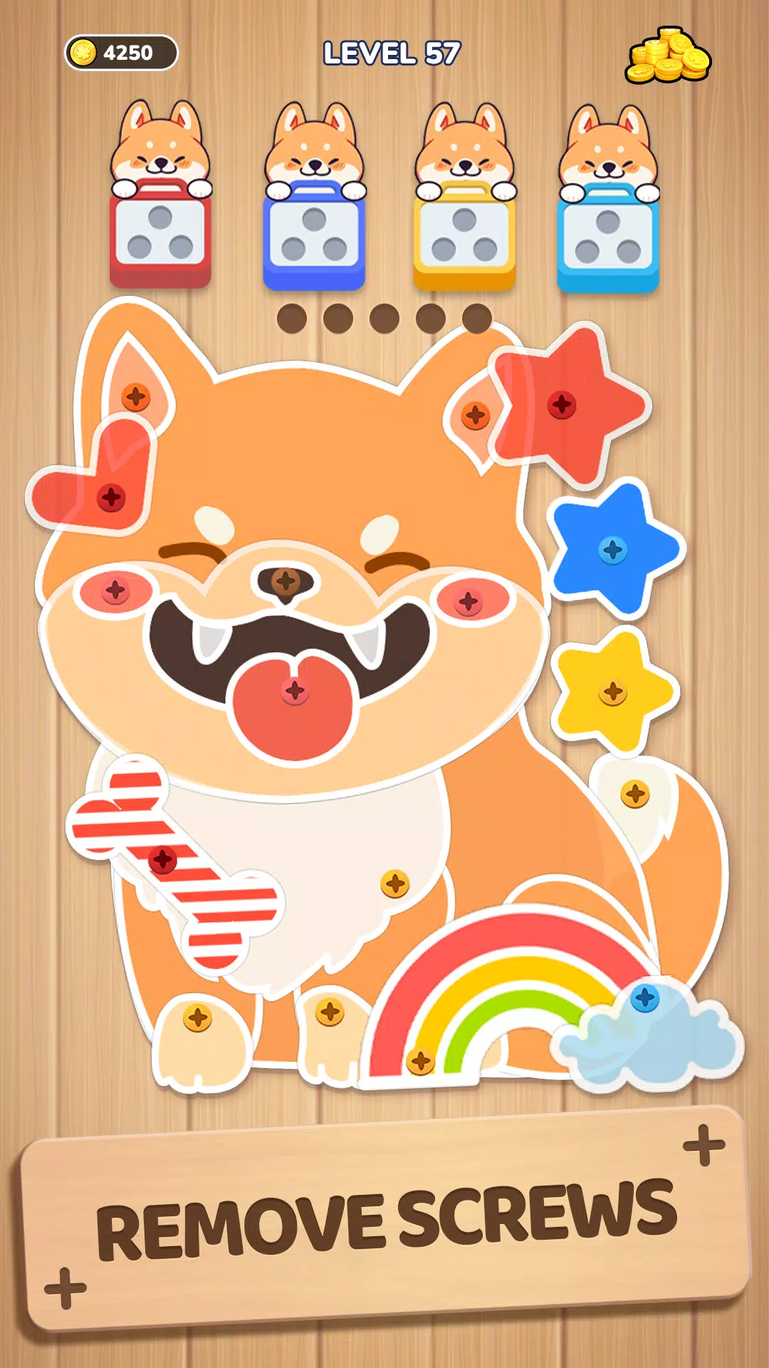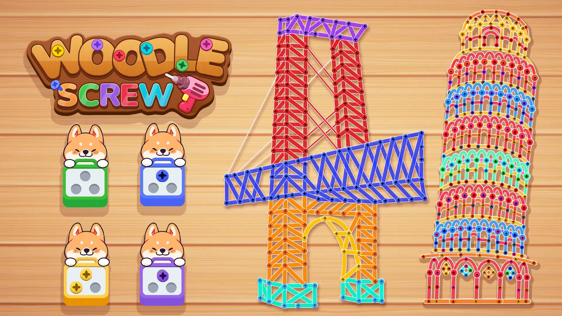 🔨 工具的使用:被难题难住了?别担心!Woodle Screw™ Pin Nuts & Bolts 为您提供了各种工具来帮助您。无论您是需要提示来计划下一步行动,还是需要特殊工具来解锁棘手的螺丝,这些功能都能确保您始终有前进的方向。策略性地使用这些工具来拧开螺栓、分类销钉和解决需要更多基本逻辑的难题。