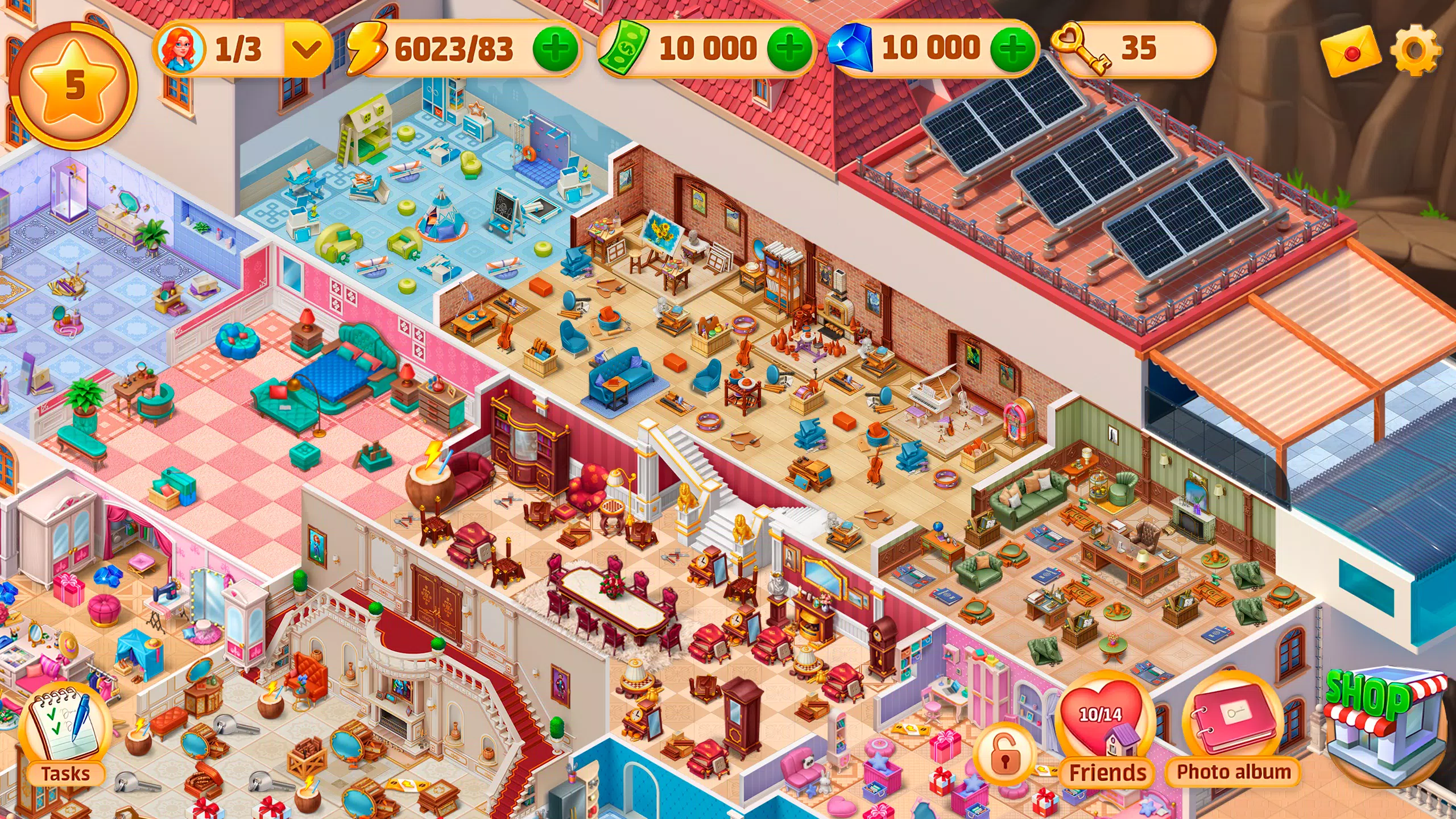 – Open various rooms: their own gym and home theatre, their barbecue zone and swimming pool, etc. Moreover, they will find the secret room or rooms?!