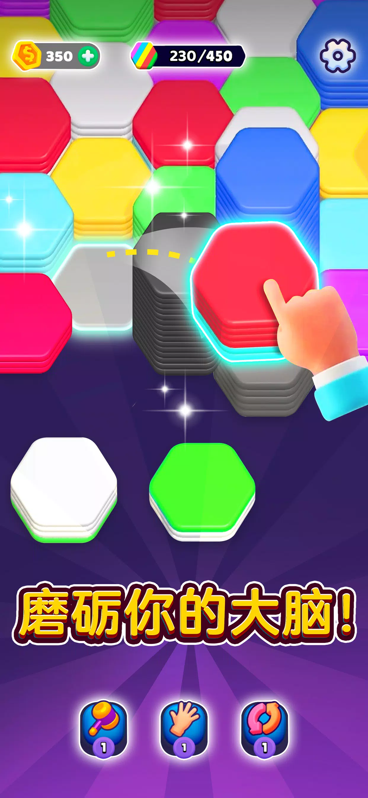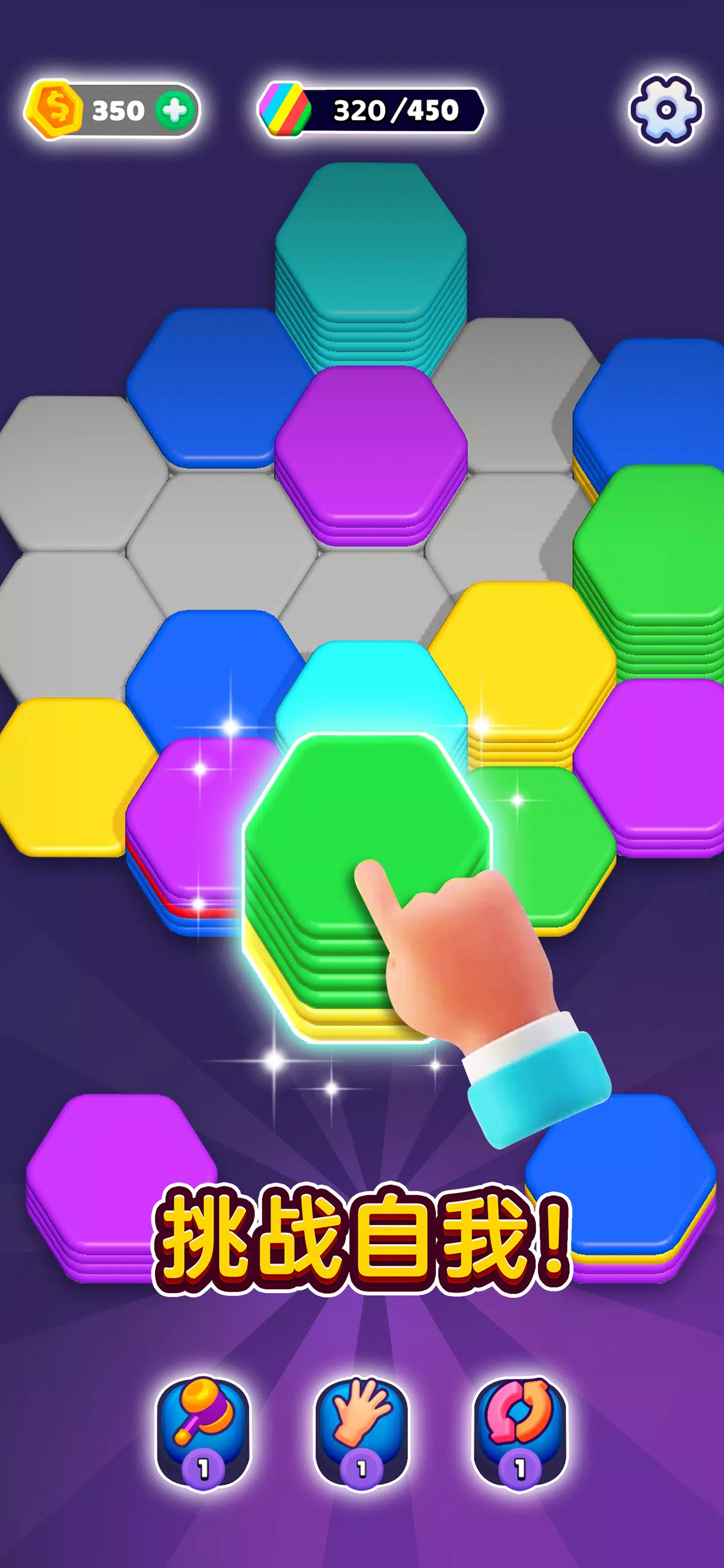 Hexa Sort 不只是一款游戏,还是让人痴迷的智力测验,需要明智的思考。随着关卡的深入,玩家会发现这款游戏既让人上瘾,又能沉静心绪,在挑战和放松之间达到了完美的平衡。通过对六边形图块进行分类、堆叠和合并等任务,检测您的技能,见证努力的成果。