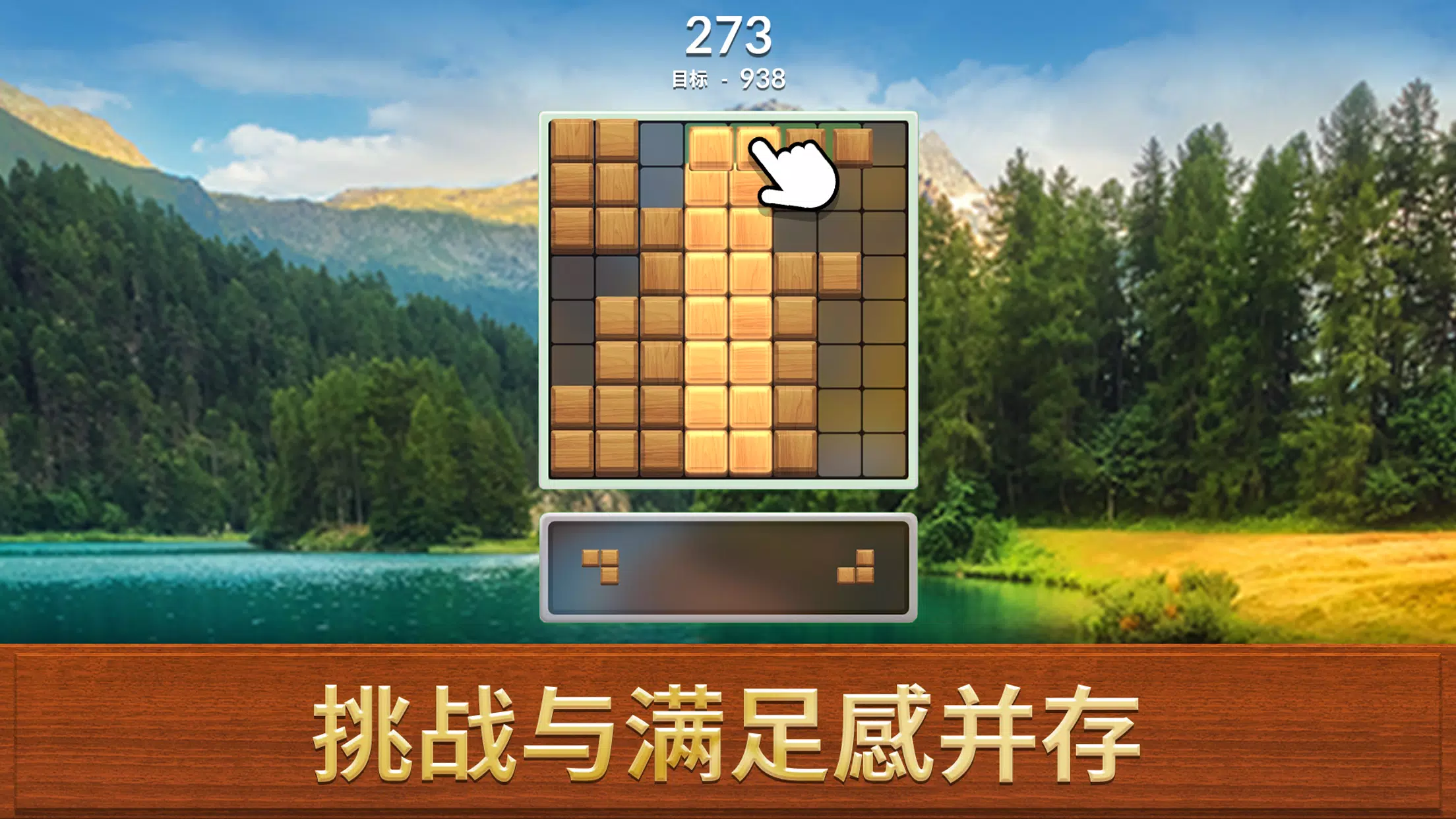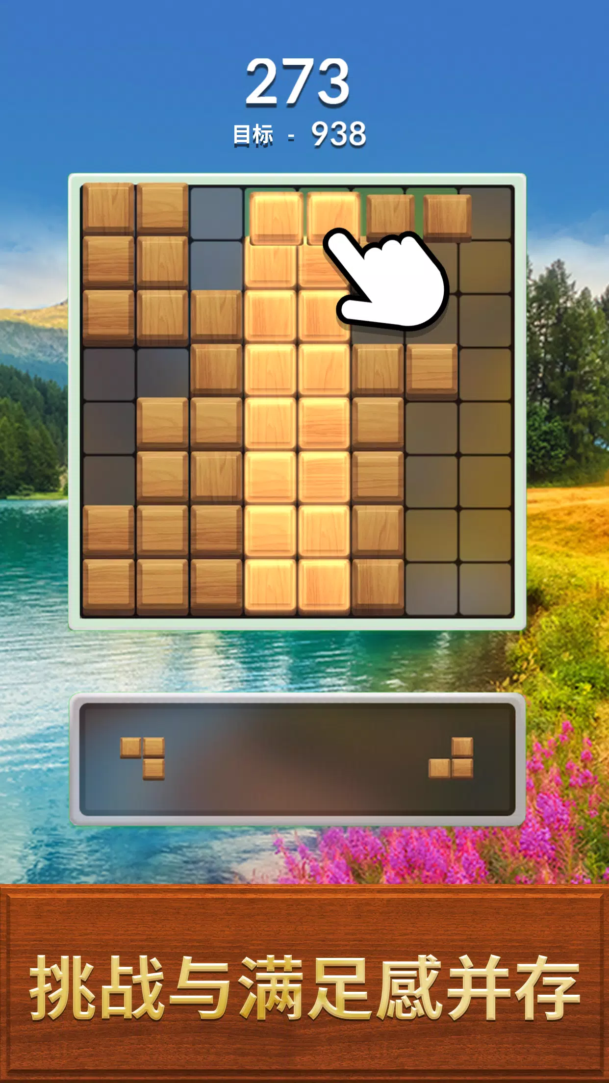 将一块木质的方块放置到拼图面板上并点击嵌入想要的位置。完成拼图面板上的横线和竖线清除方块并留出空间。没有步数移动且排行榜已经满员时,你是否可以继续挑战自己的记录呢?