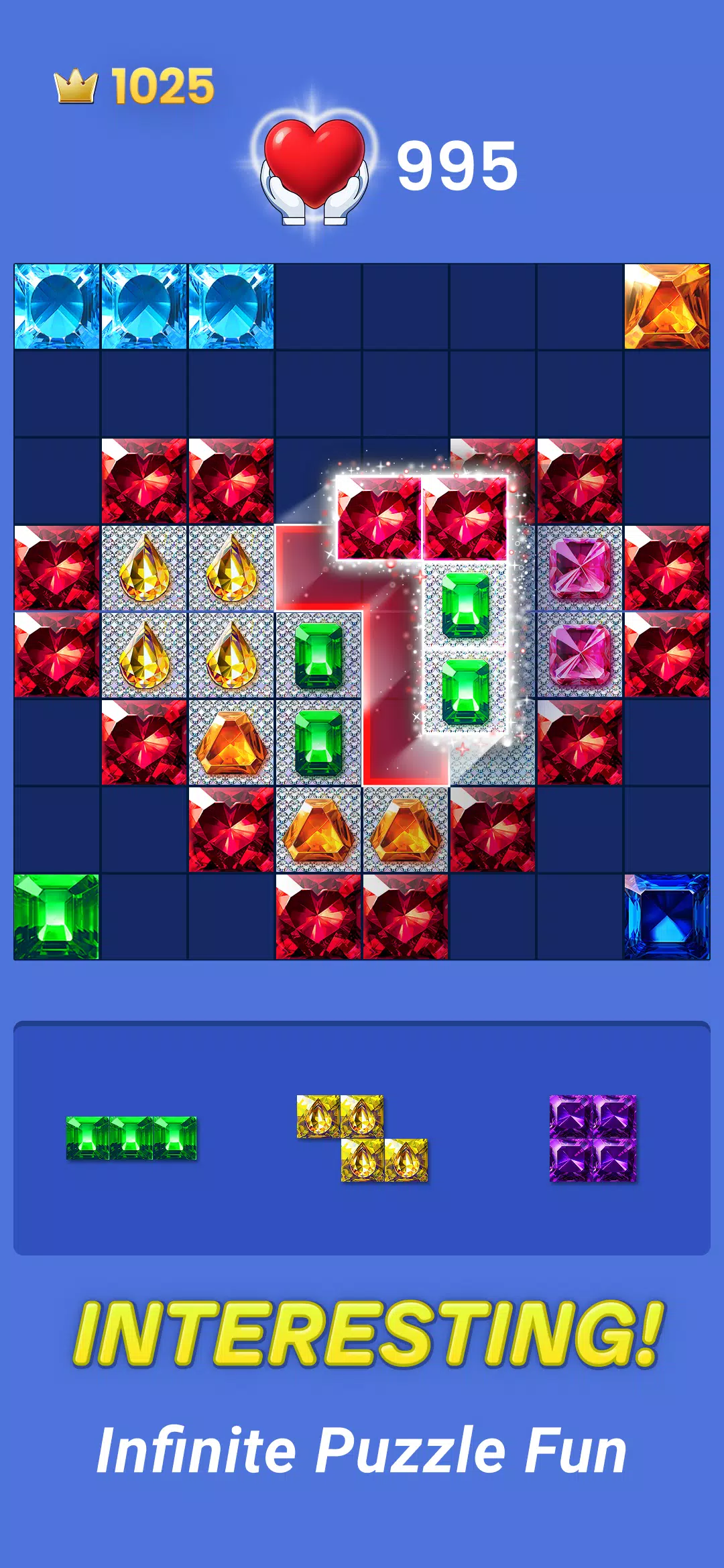 在经典的宝石匹配游戏中放松身心,体验策略的乐趣。创造高分,挑战好友,称霸全球排行榜。在这款令人上瘾的轻松方块解谜游戏中,享受色彩益智游戏机制和方块消除的刺激。在这款方块消除解谜游戏中,每一步都至关重要,你对宝石布局的掌握程度决定了你的成败。