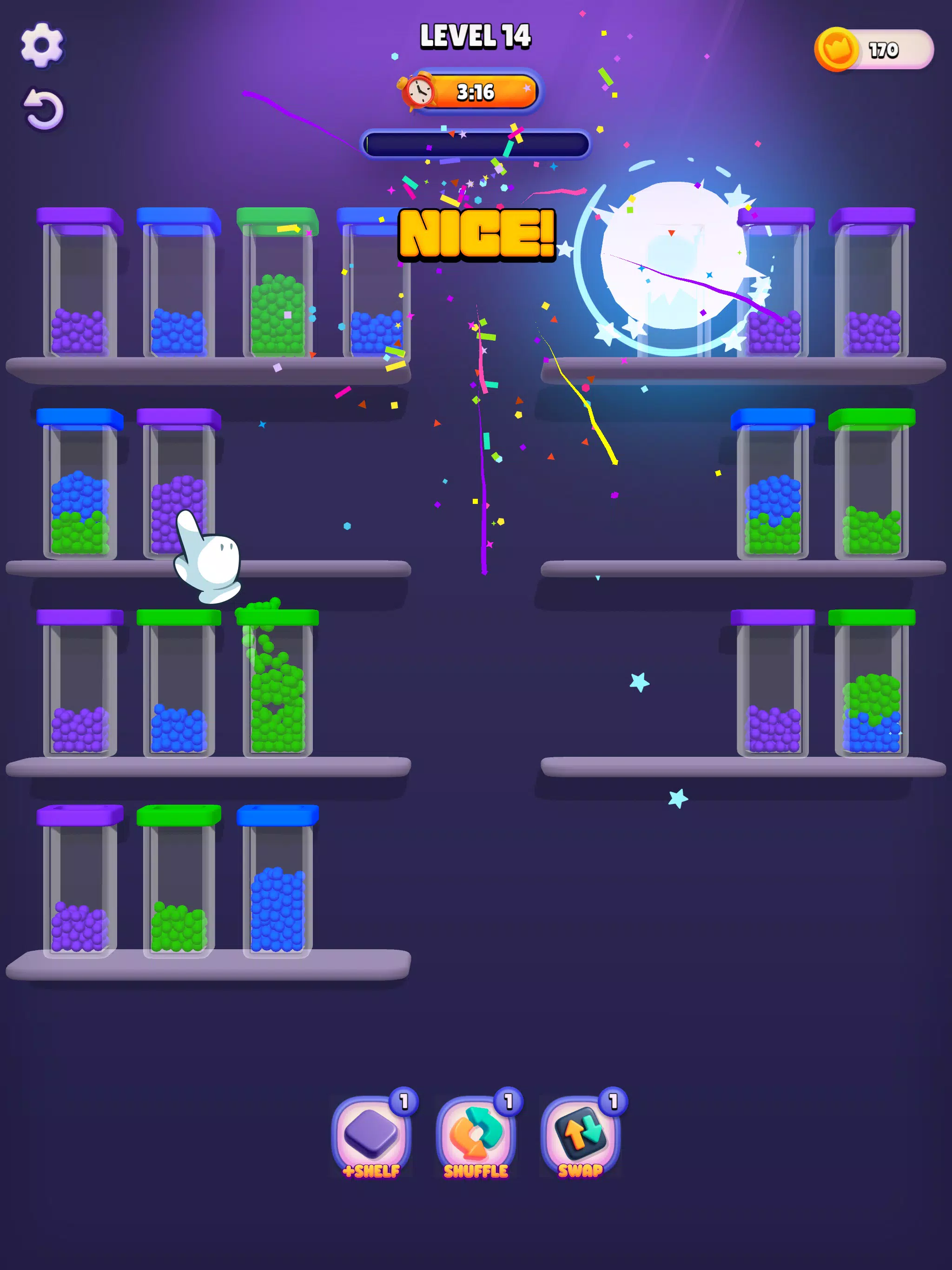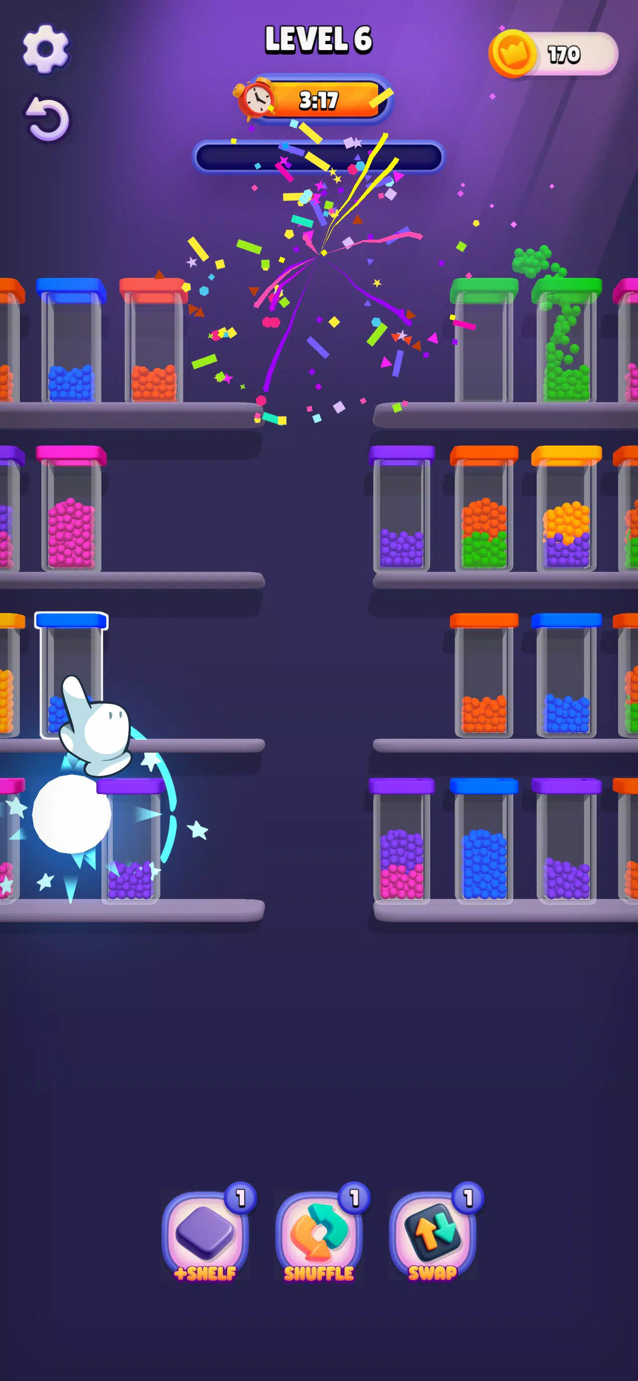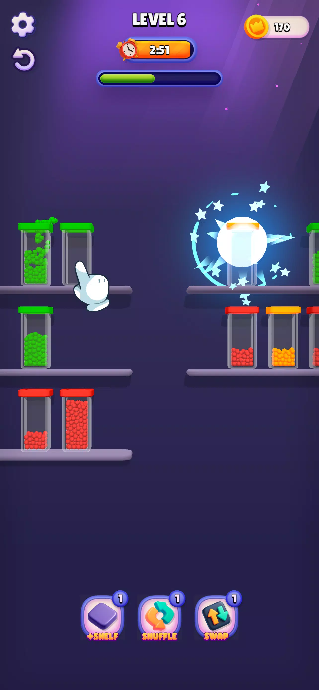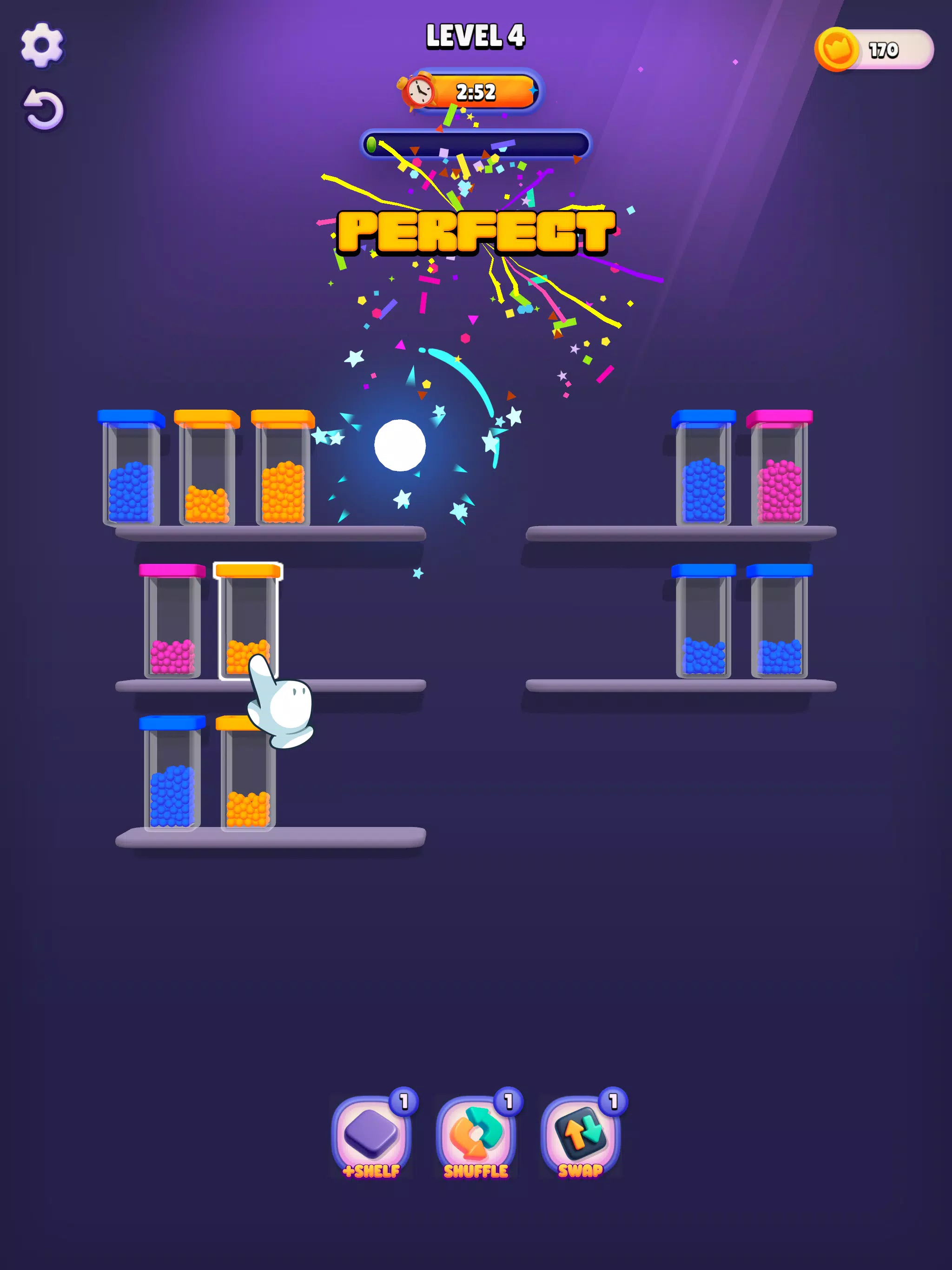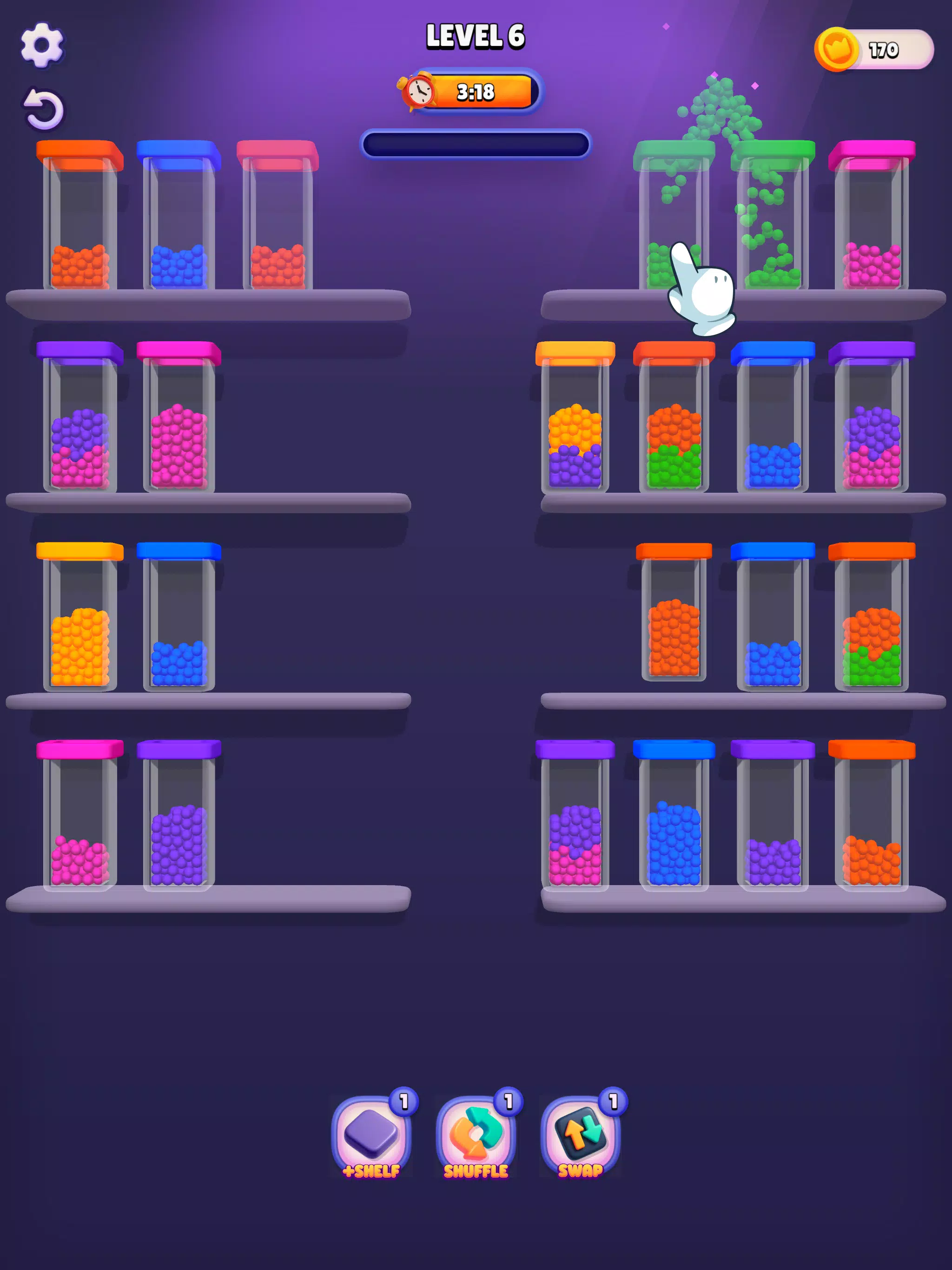 拖放并堆叠球体,匹配颜色并清除管子。规则很简单:你只能将管子放在相同颜色的管子旁边,或者放在空架子上。每一关都越来越难,挑战你的大脑极限。放松身心,集中注意力,找到完美的移动方式,闯过数百个趣味关卡。