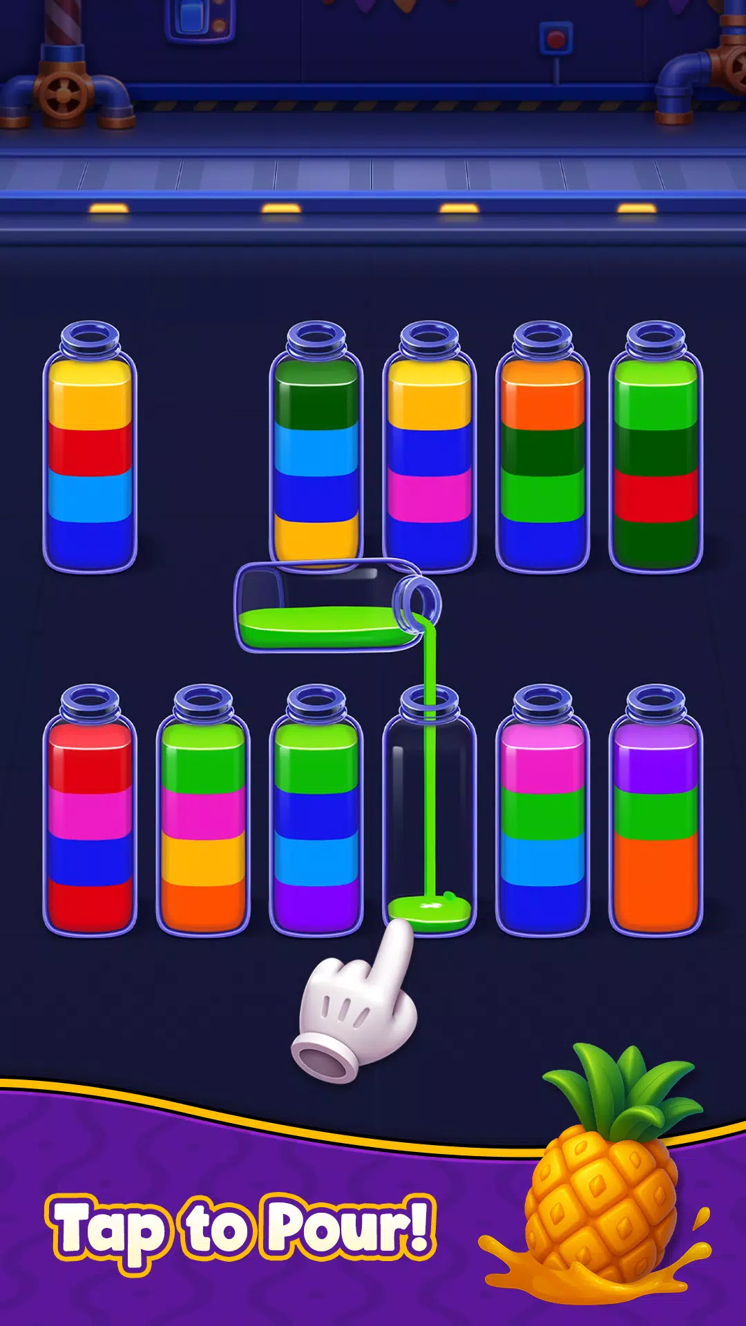 • 点击任意瓶子,将苏打水倒入另一个瓶子。