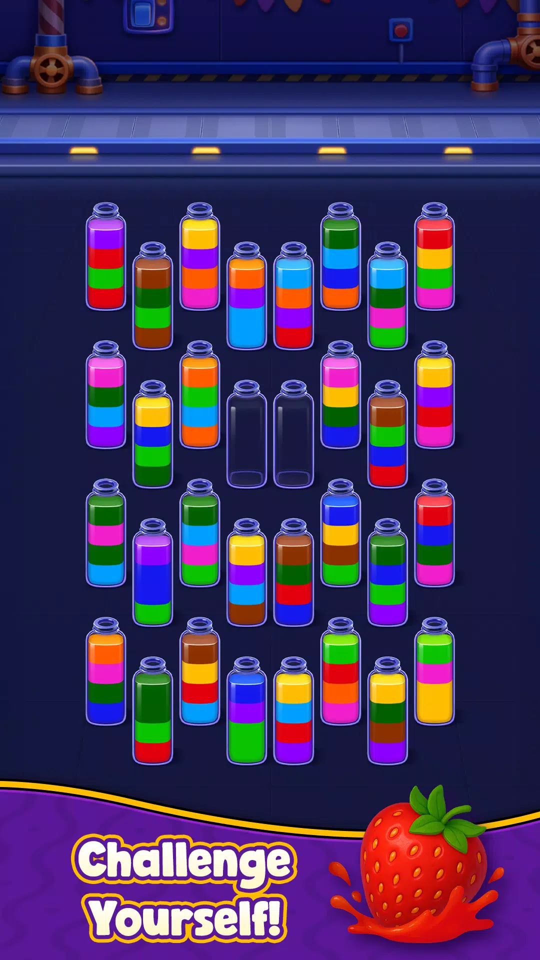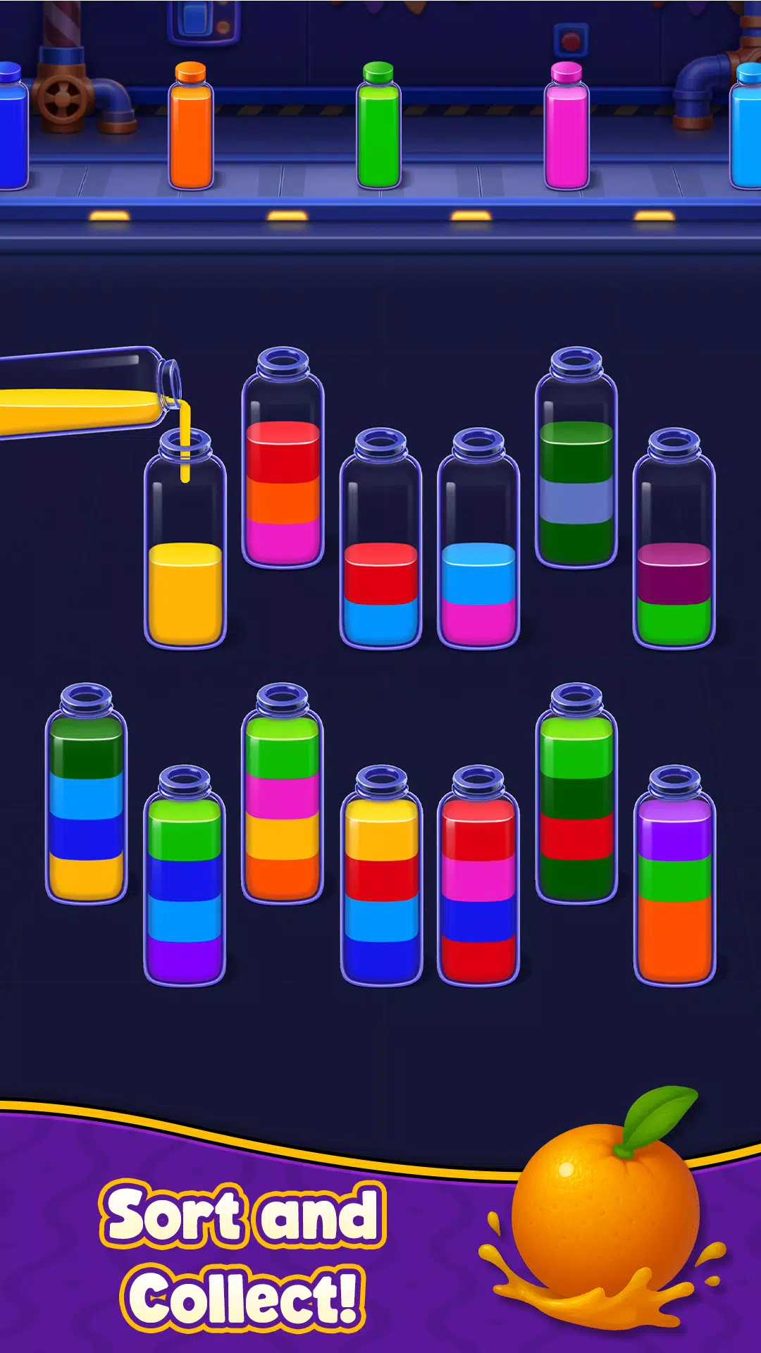 • 匹配颜色,直到每个瓶子都只装一种颜色的苏打水。