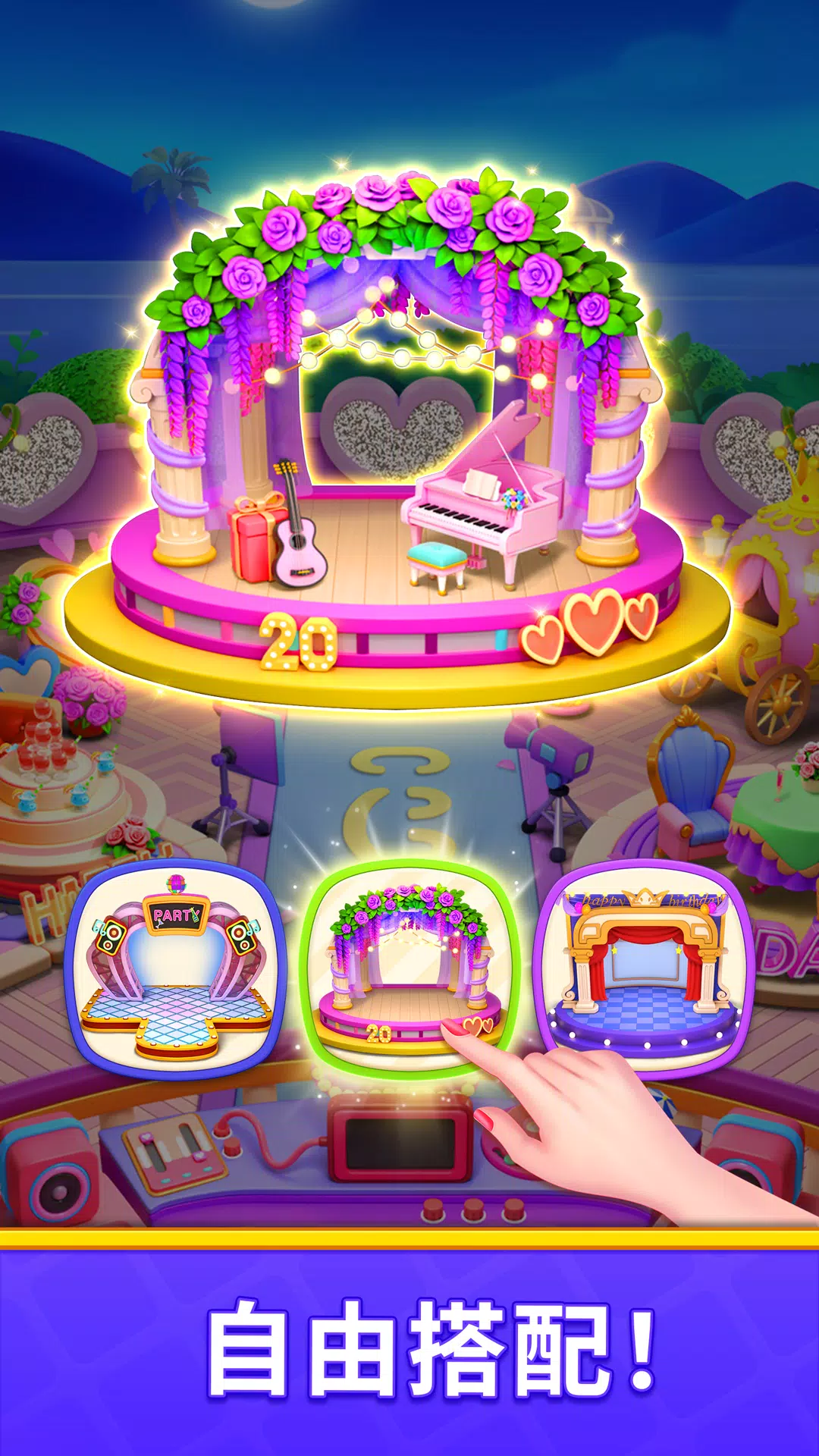 • 通过征服刺激的三消谜题赚取星星,发掘你隐藏的设计师天赋!
