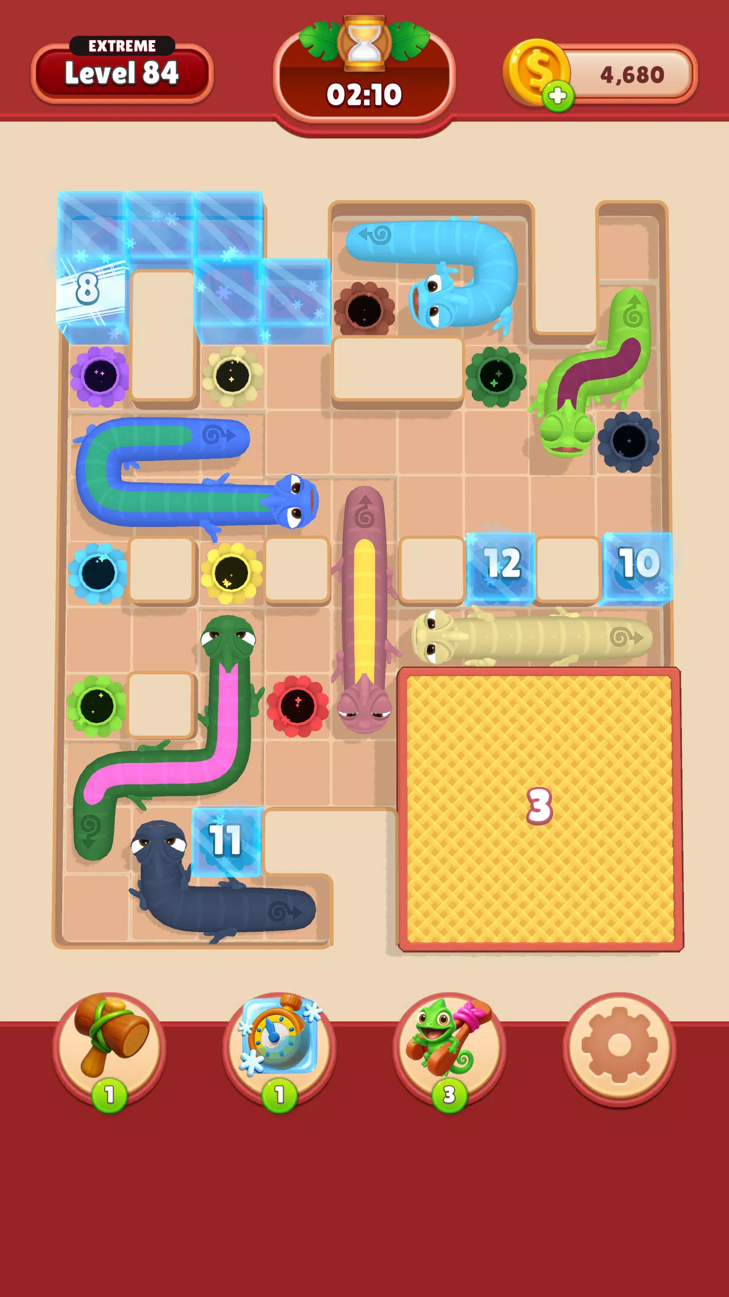 Using intuitive drag-and-move mechanics, navigate these silly reptiles through complex paths. But watch out—as they stretch and twist, they might get in each other’s way! Do you have the strategic wit to help these clumsy friends make their great escape?