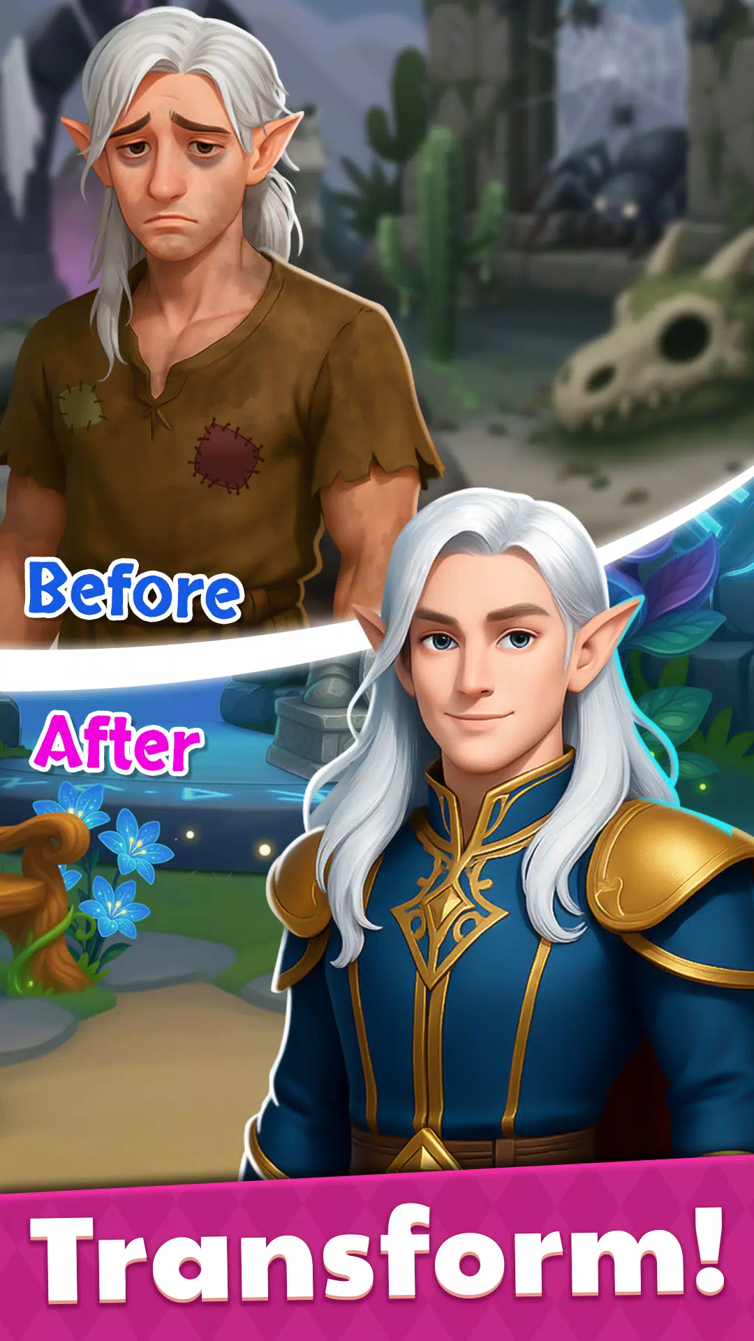 ✨ 欢迎来到《合并奇幻改造与装饰》,这是一款融合奇幻的冒险游戏,龙族传说、万圣节护身符和魔法创意将重建美丽,修复被遗忘的世界。