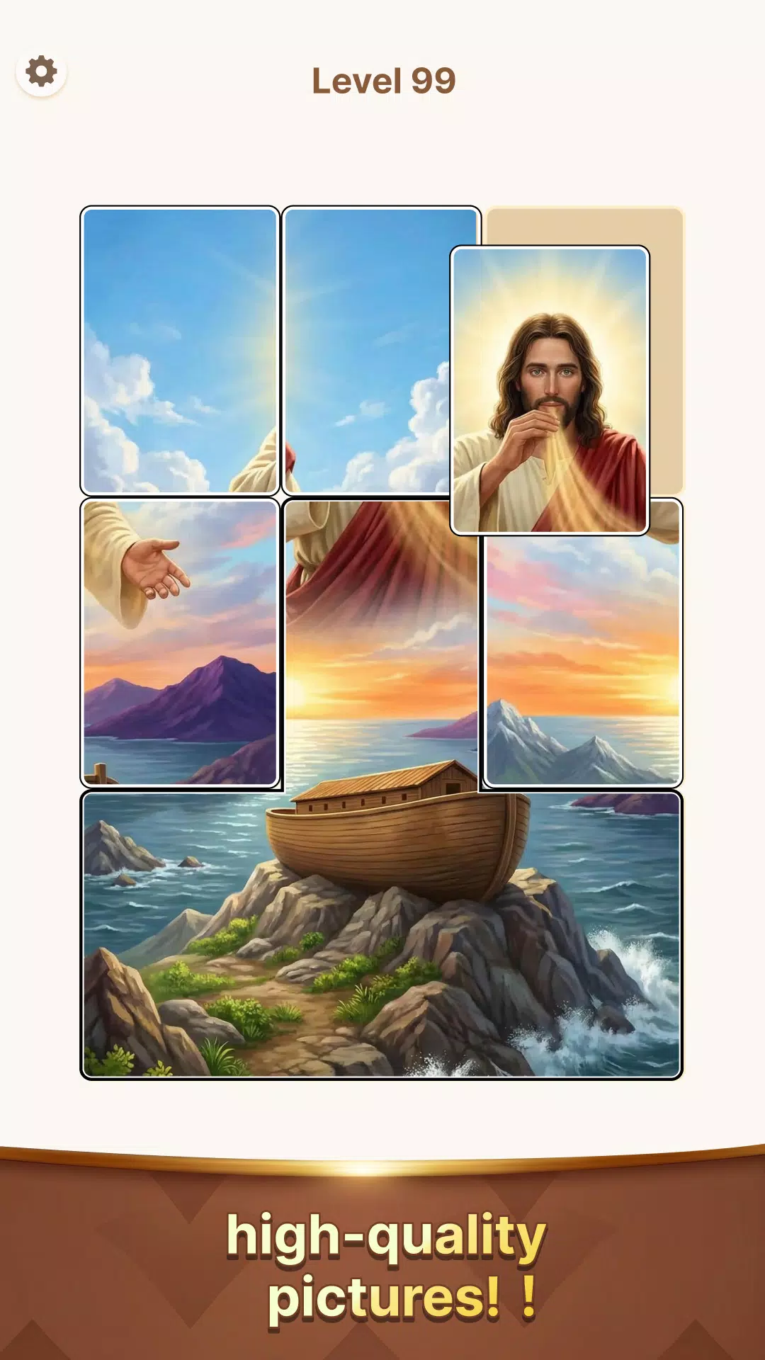 探索不断更新的圣经主题内容,包括耶稣的场景、宁静的教堂、经文、静谧的乡村景色以及充满希望和恩典的抚慰人心的画面。每个关卡都旨在让您在游戏过程中感受到平静、专注和宁静的乐趣。