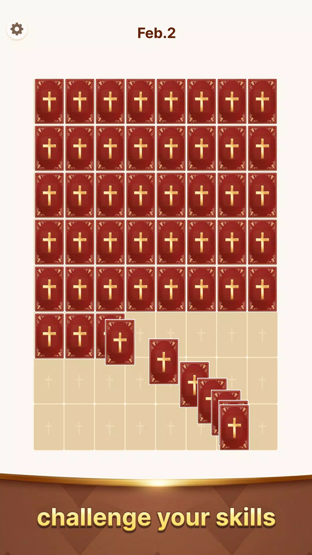 无论您是想在清晨享受片刻宁静,还是在夜晚放松身心,圣经纸牌拼图都能为您提供一种简单而有意义的方式来放松身心。游戏玩法简单易懂,轻松无压力,适合初学者和经验丰富的纸牌玩家。