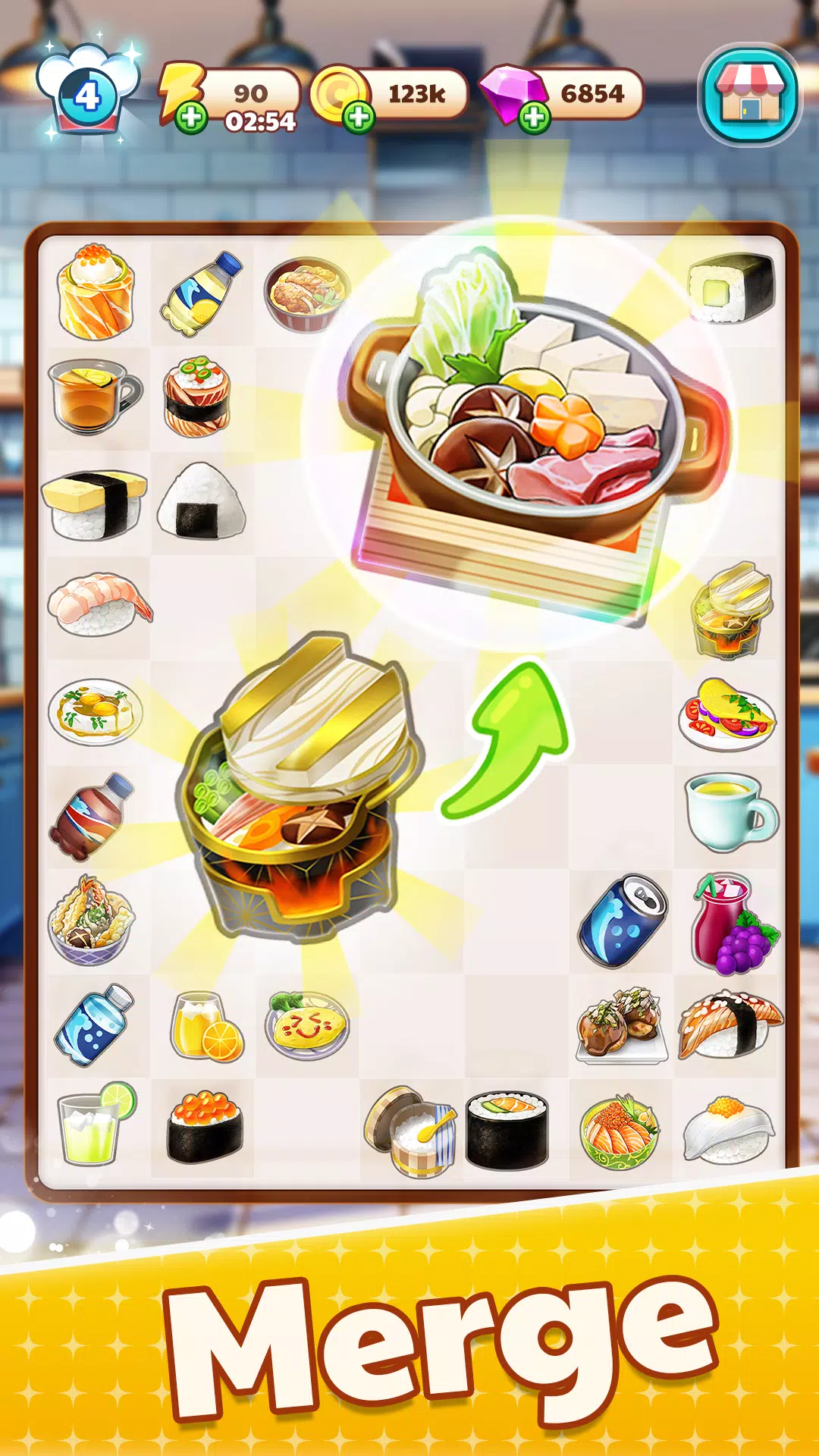 ● 刺激的合并:将各种有趣的工具、厨房设备、装饰和食物组合在一起。合并即可获得所需物品!