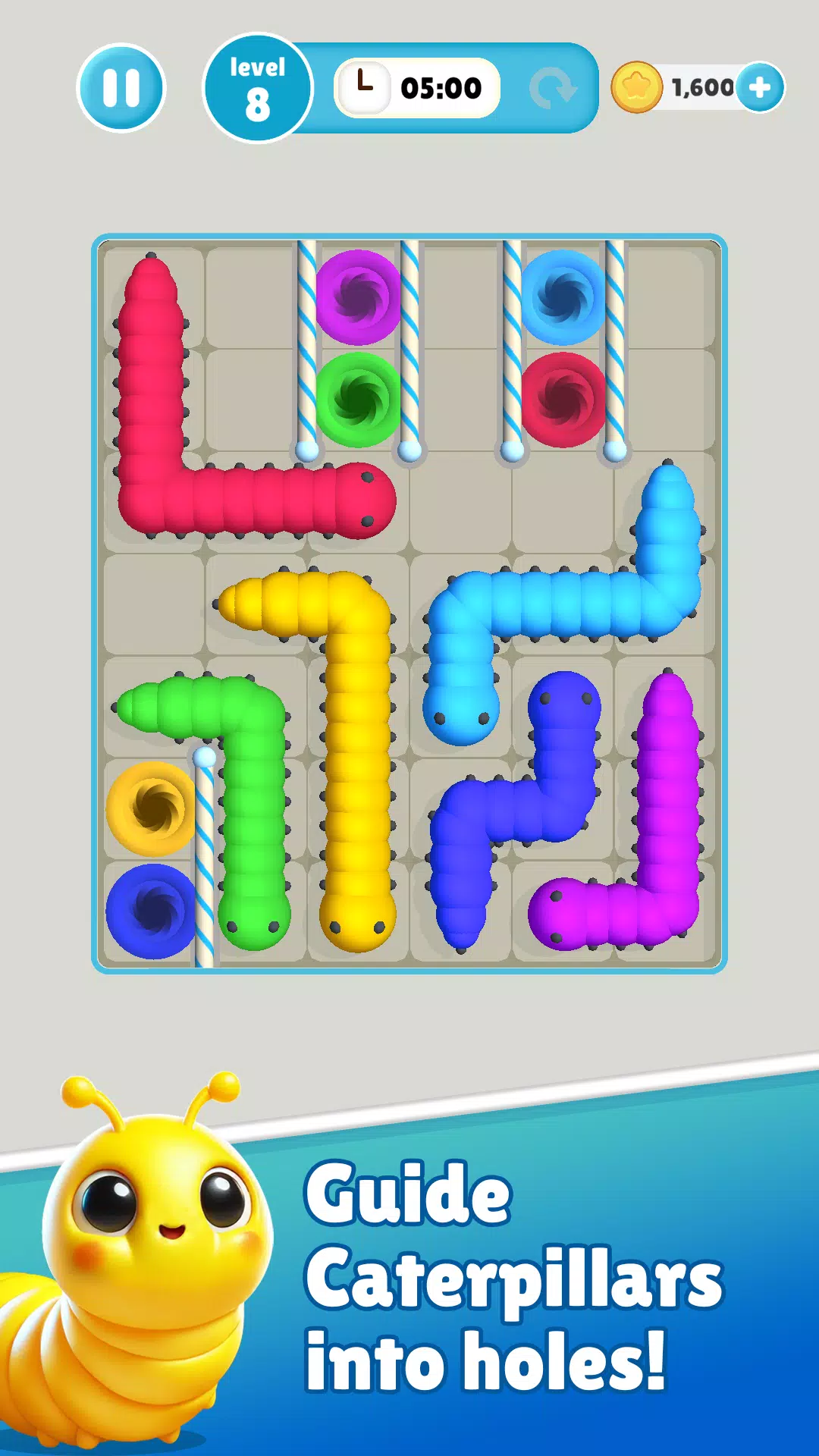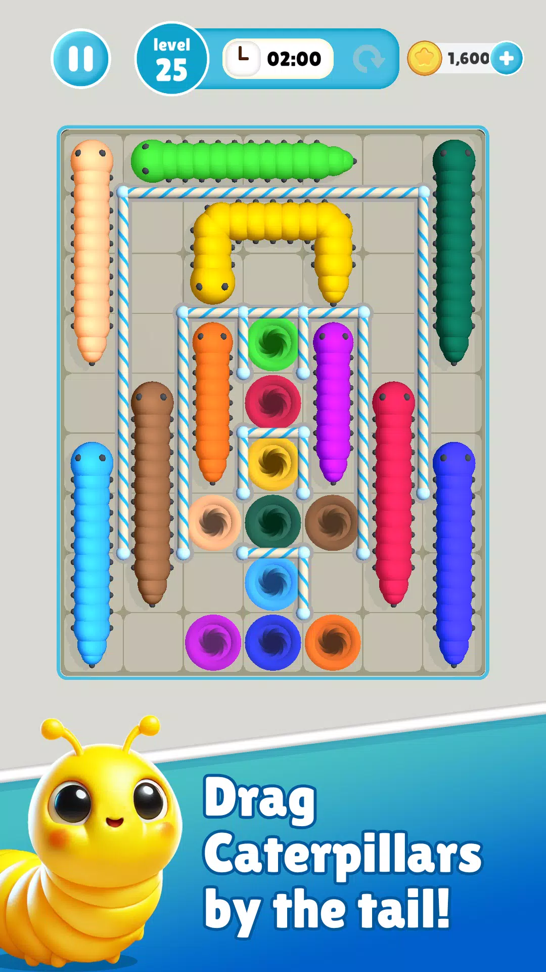 踏上轻松愉悦又充满挑战的解谜之旅!引导顽皮的毛毛虫进入它们对应的茧中,清除棋盘上的障碍物,看着它们准备化蝶。凭借直观的拖放操作和数百个色彩缤纷的谜题,毛毛虫游戏易于上手,但精通却充满挑战。