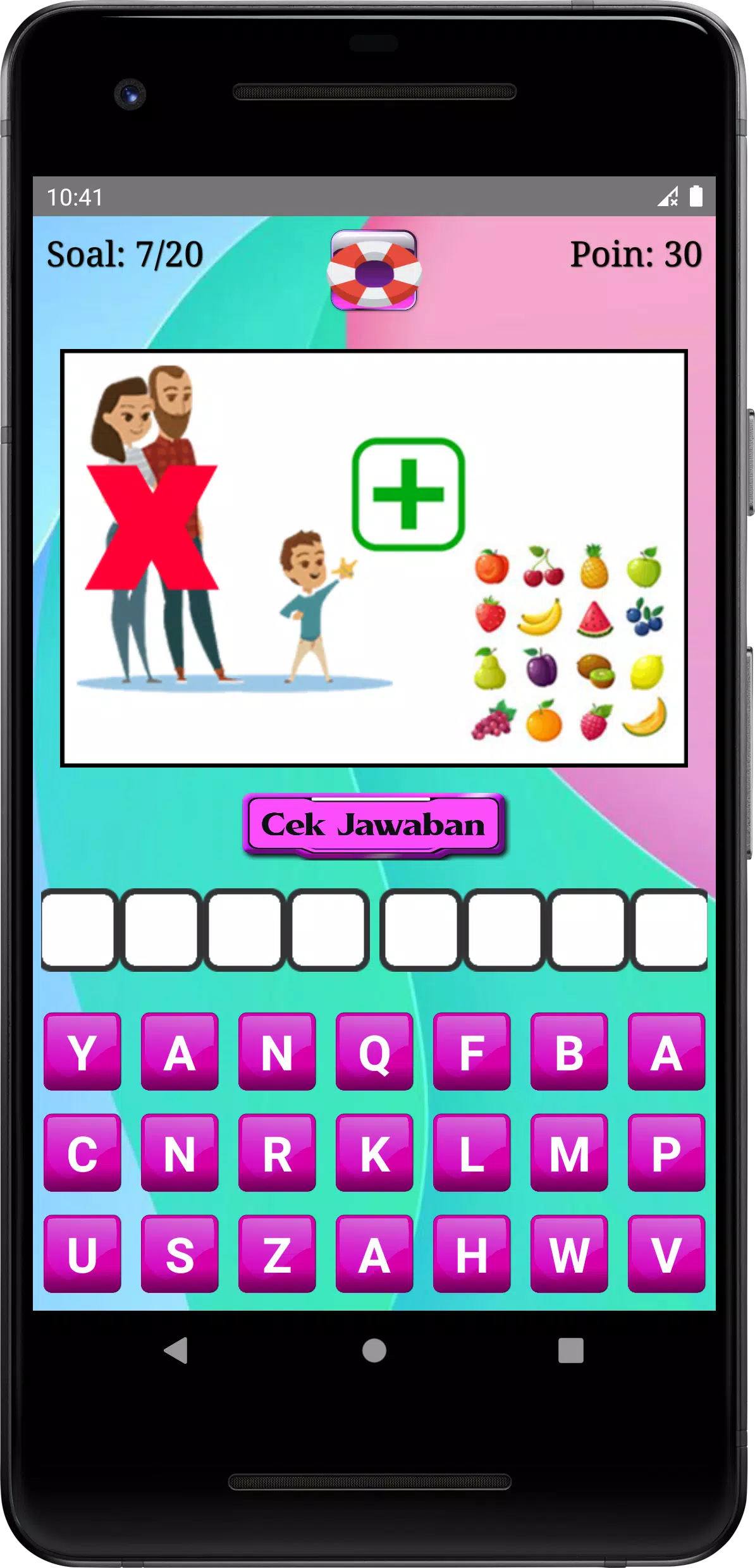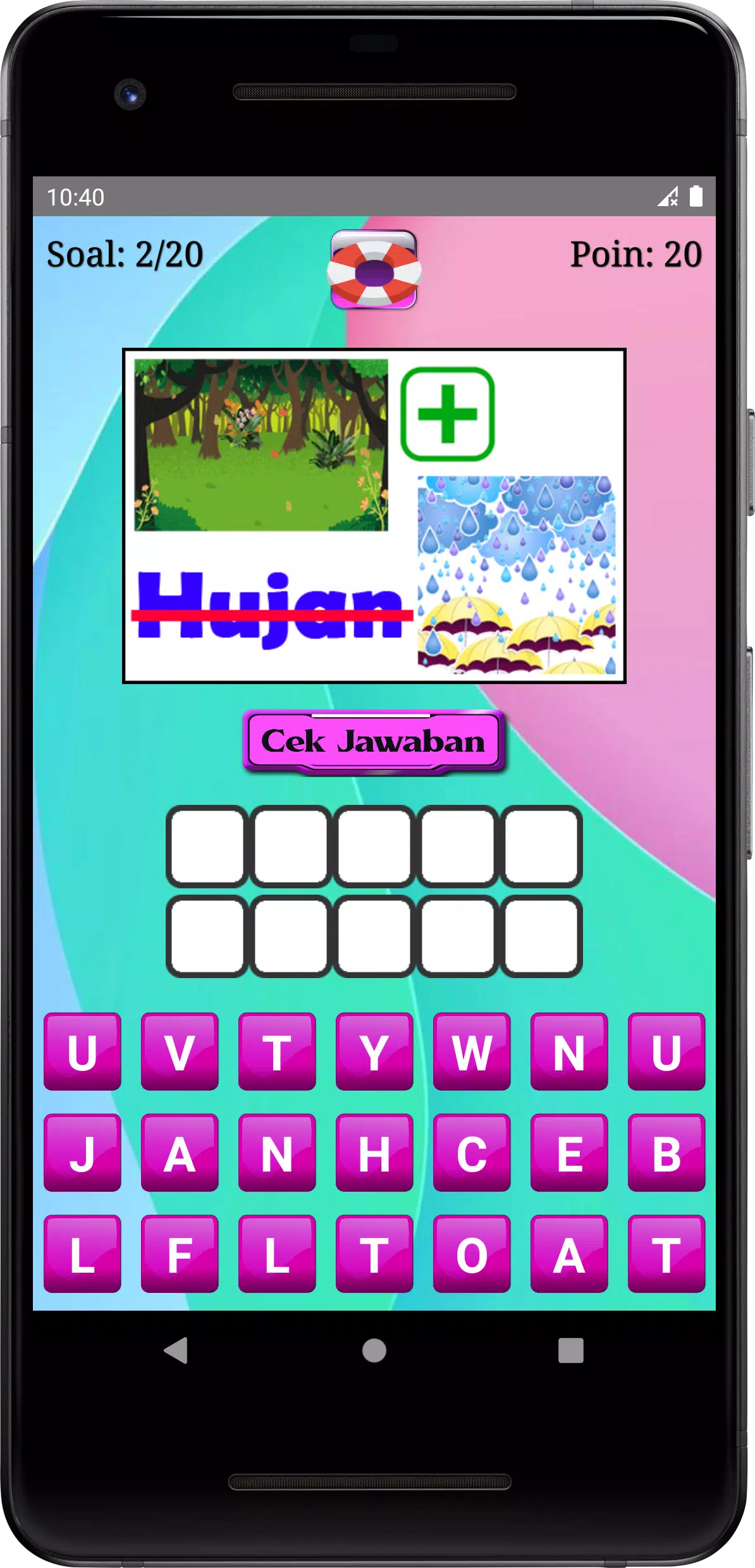 猜字图片是一款将打乱的单词排列成充满谜题的图片的游戏应用程序。如果您在回答这个游戏时遇到困难,请不要担心,因为这个图片猜词游戏还配备了浮标标志的帮助,当然目的是让他们能够回答它,而不会卡在某些问题上。