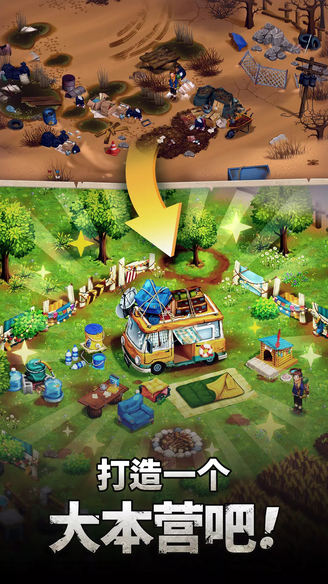 与其他幸存者一起,打造与大自然和谐共处的“环保营地”!