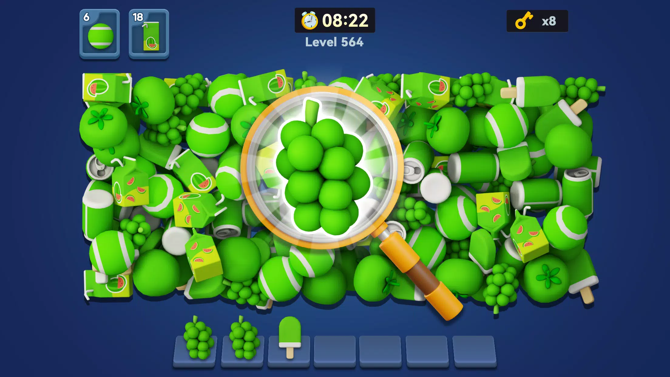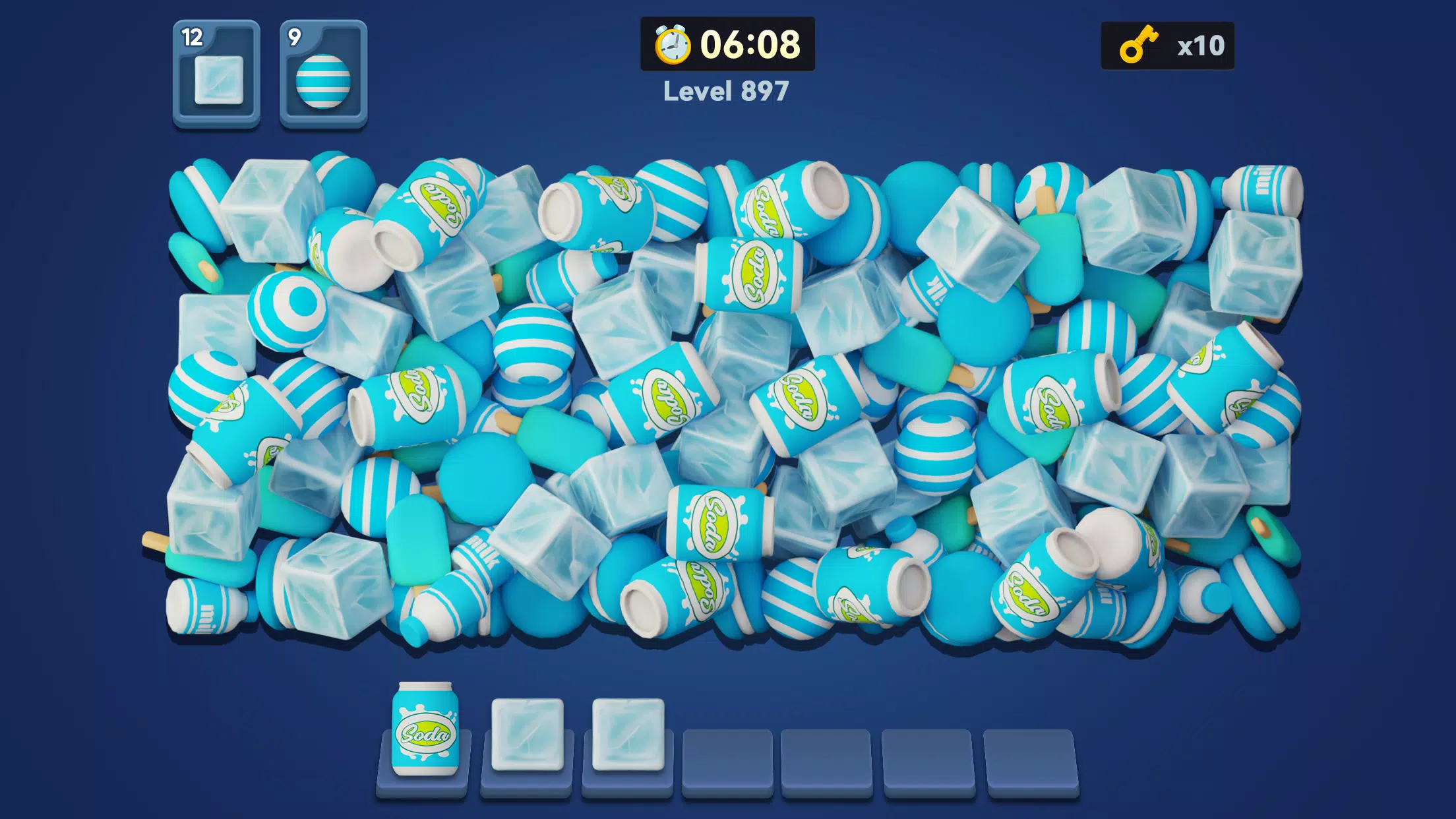 找到并匹配相同的 3D 物品,在时间结束前消除地面上的所有物品。