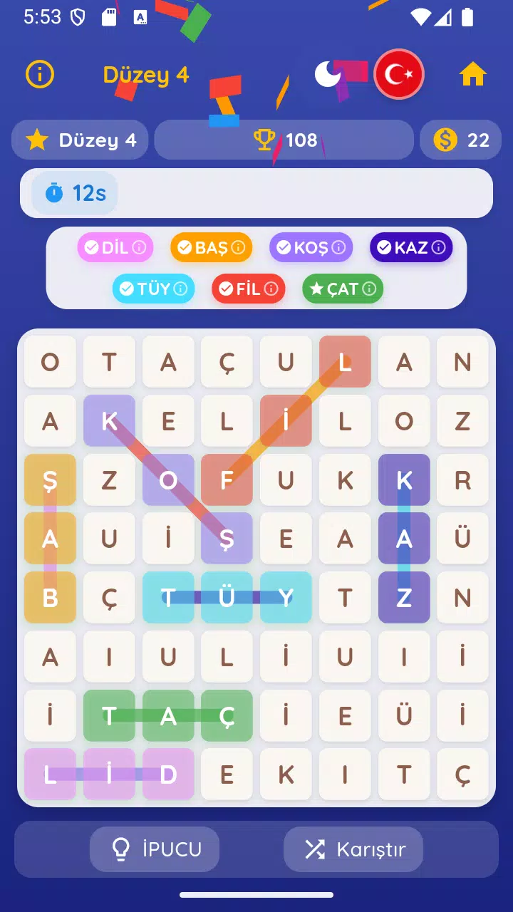 通过我们的单词益智游戏步入神奇的单词世界!通过这款增强智力、开发大脑的找词游戏获得有趣且具有教育意义的体验。通过在每个级别查找不同长度的单词来扩展您的土耳其语词汇量。测试您的快速思维能力,搜索和查找单词并开始愉快的学习之旅。当你与时间赛跑时,每一个正确的词都会带你进入一个新的水平。