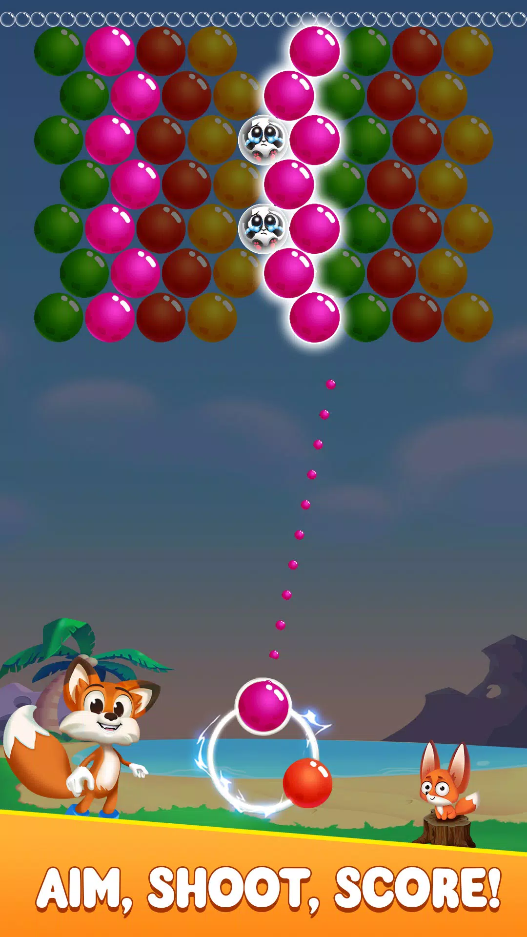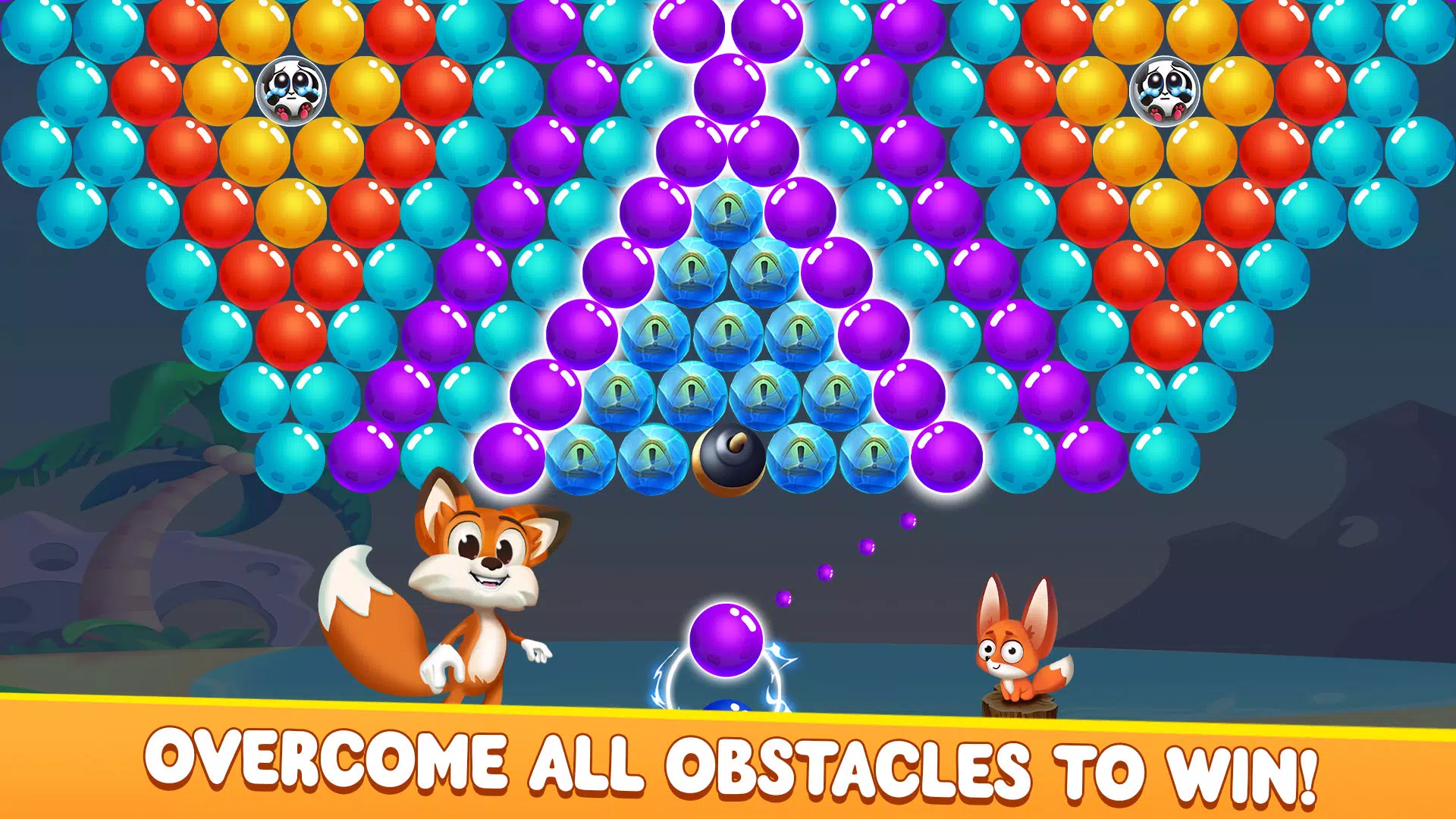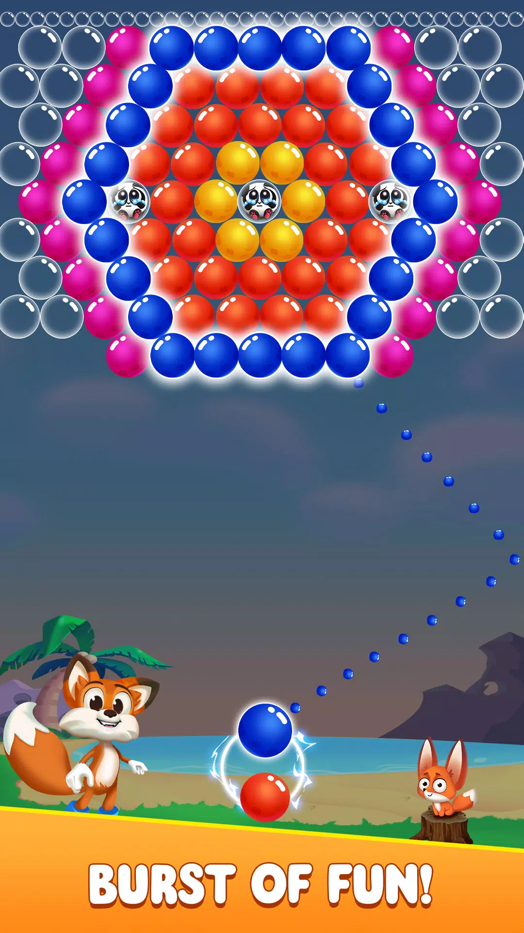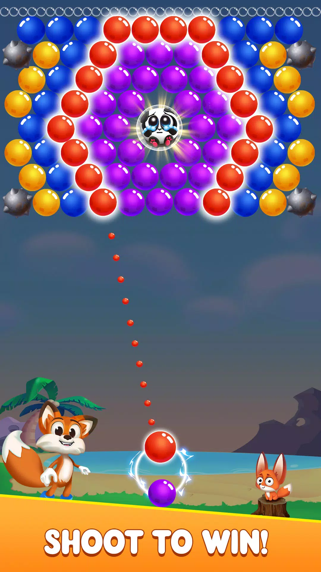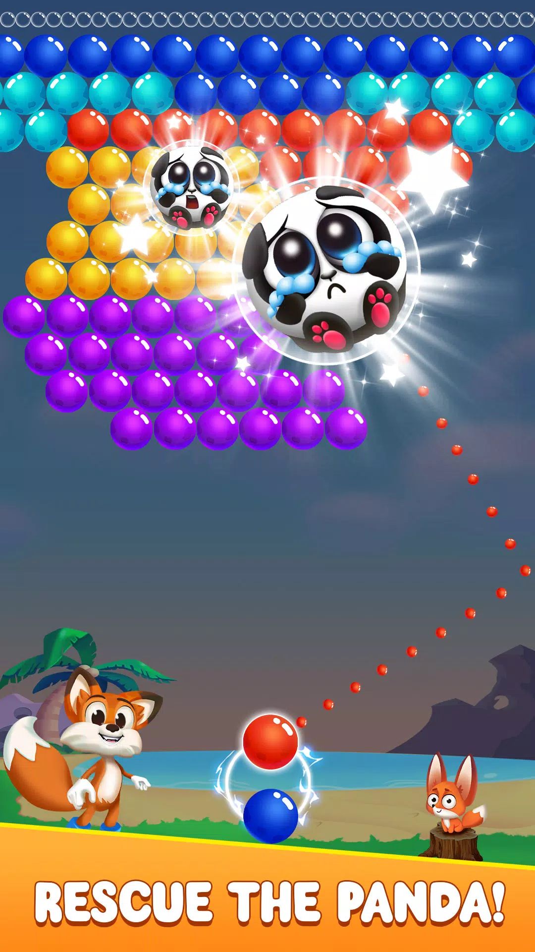 让我们一起帮助艾瑞尔狐狸完成泡泡射击的挑战,拯救熊猫!