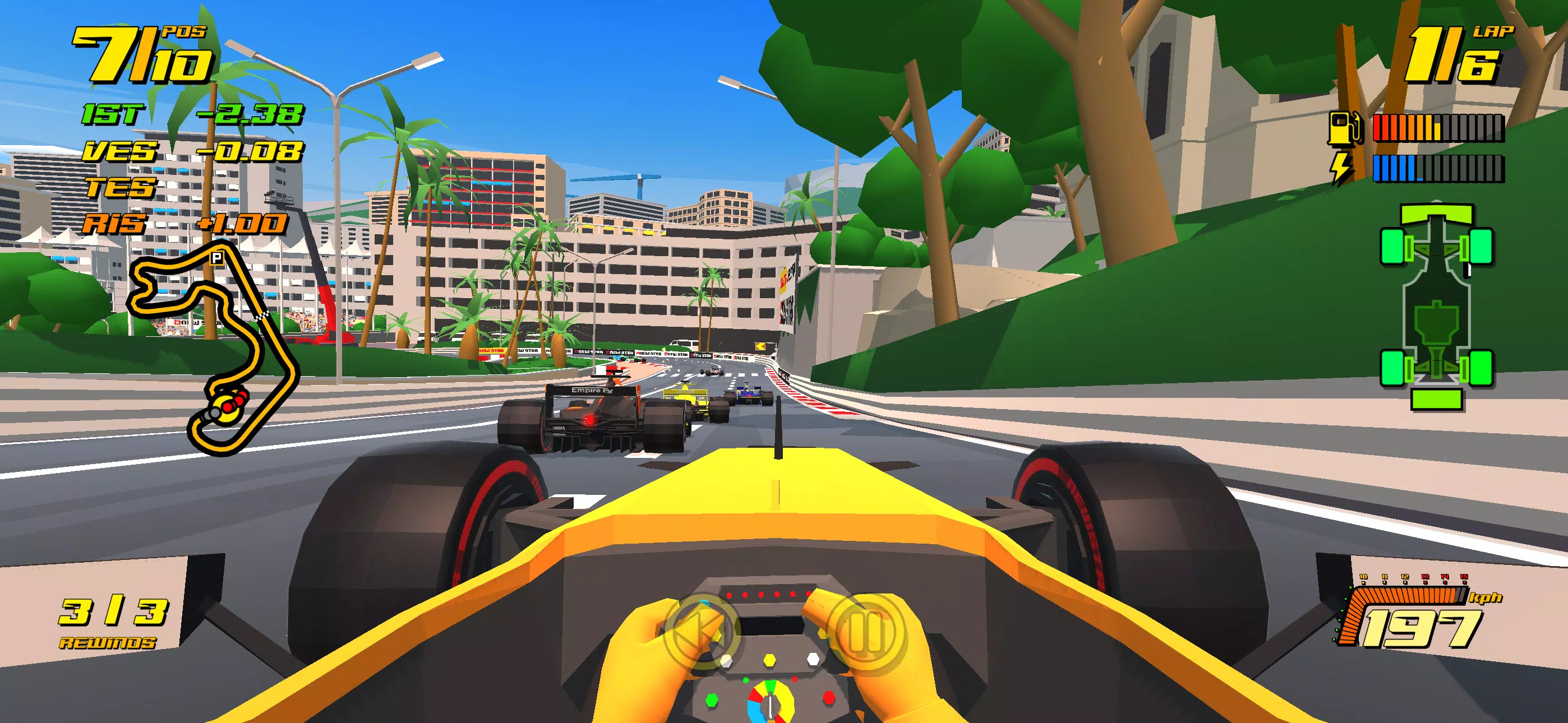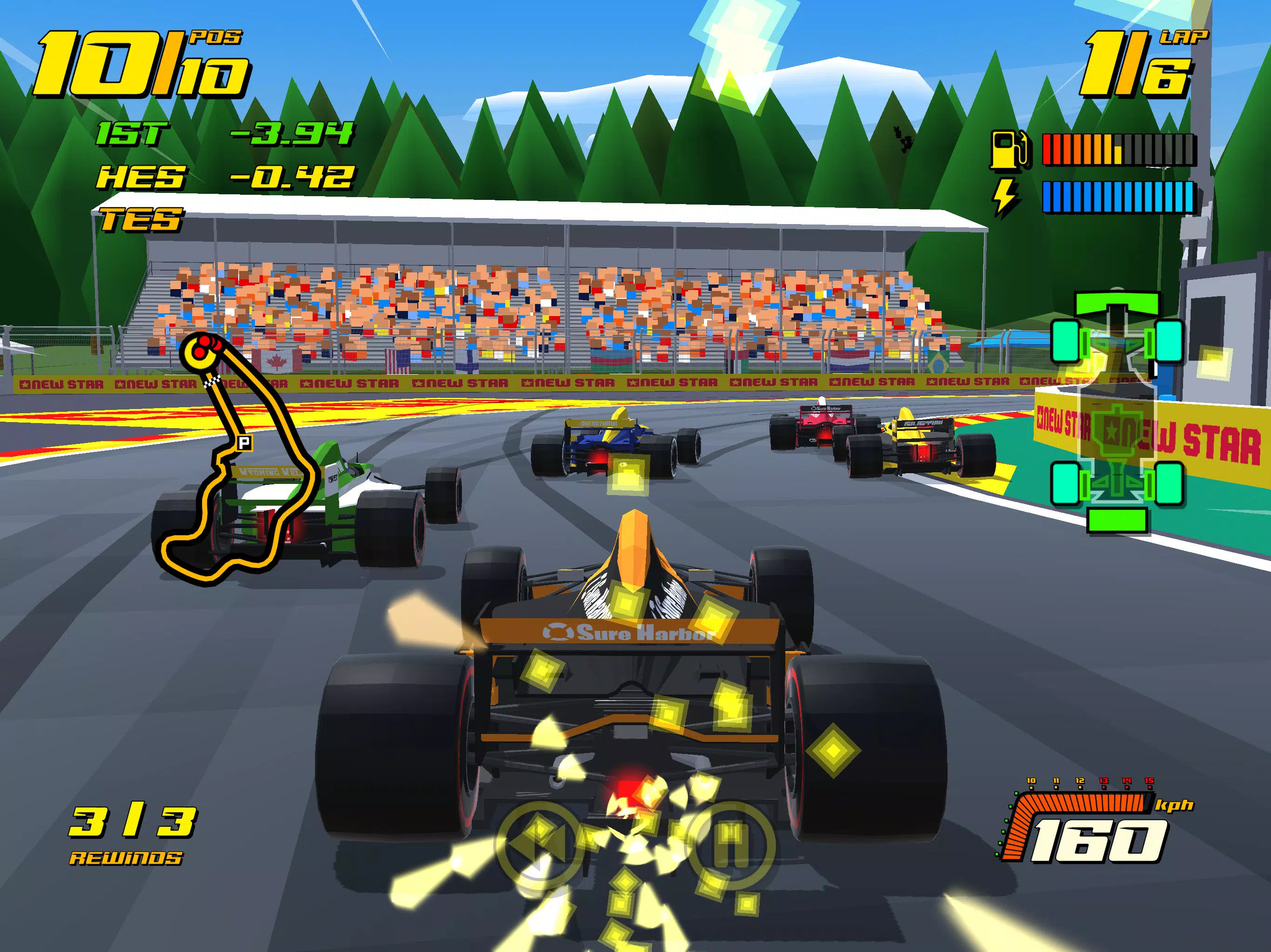 这款街机赛车游戏上手简单,却蕴含着远超你想象的深度。虽然任何人都能轻松上手并取得成功,但想要真正精通赛车,就必须善用轮胎选择和磨损、部件可靠性、利用尾流超越对手、燃油储备,甚至进站策略。比赛中瞬息万变,从灾难性的部件故障和瞬息万变的天气,到爆胎和多车连环相撞,任何事情都可能发生。