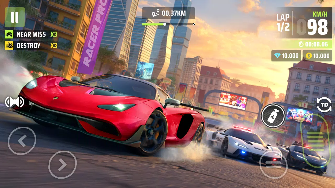 在城市中与智能 AI 对手展开竞速。狭窄的弯道、繁忙的街道和高速的较量,带来惊险刺激的竞速体验。