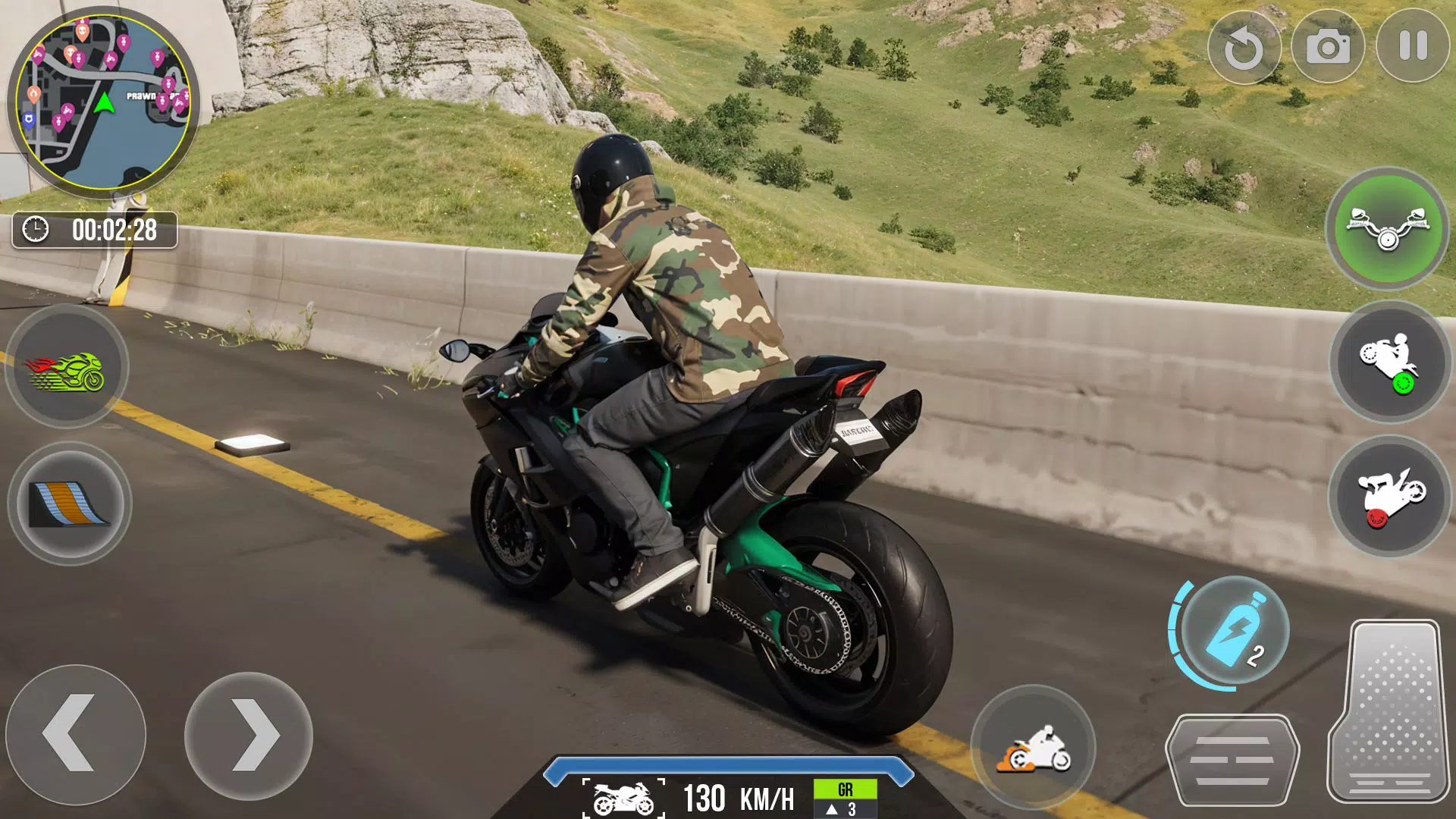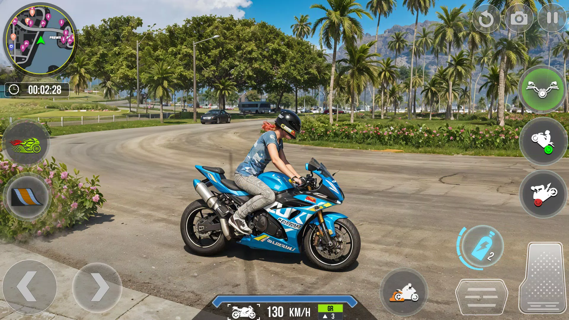 在《真实摩托车驾驶赛车游戏》中展现您的摩托车赛车技巧。高速穿越整个地图,感受最佳体验。令人惊叹的开放世界地图经过精心设计,不仅能考验您的摩托车赛车技巧,还能提供最佳的游戏体验。这款交通摩托车驾驶游戏拥有最大的开放世界地图和令人惊叹的环境。启动引擎,踩下油门,在《真实摩托车驾驶游戏 3D》中成为冠军。这款真实摩托车驾驶游戏拥有逼真的画面和流畅的游戏体验。